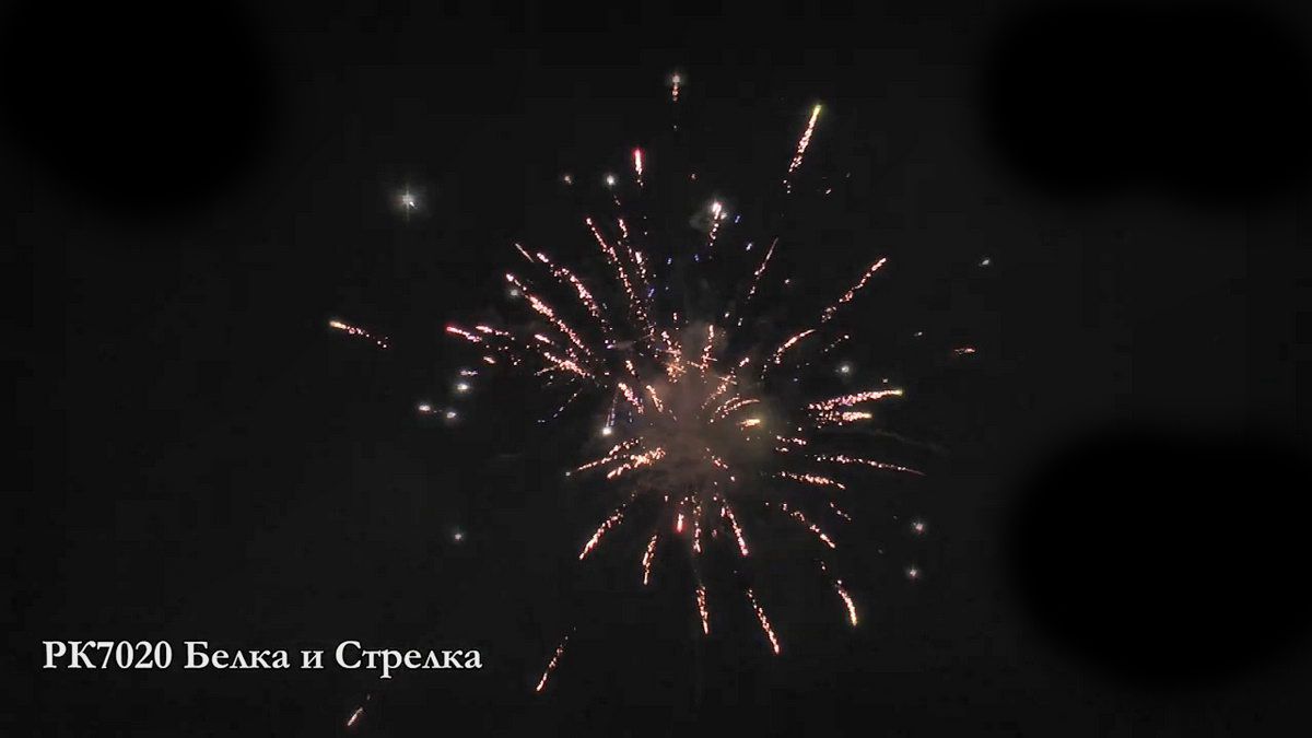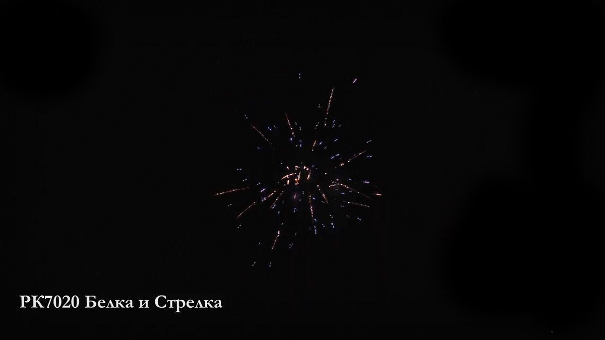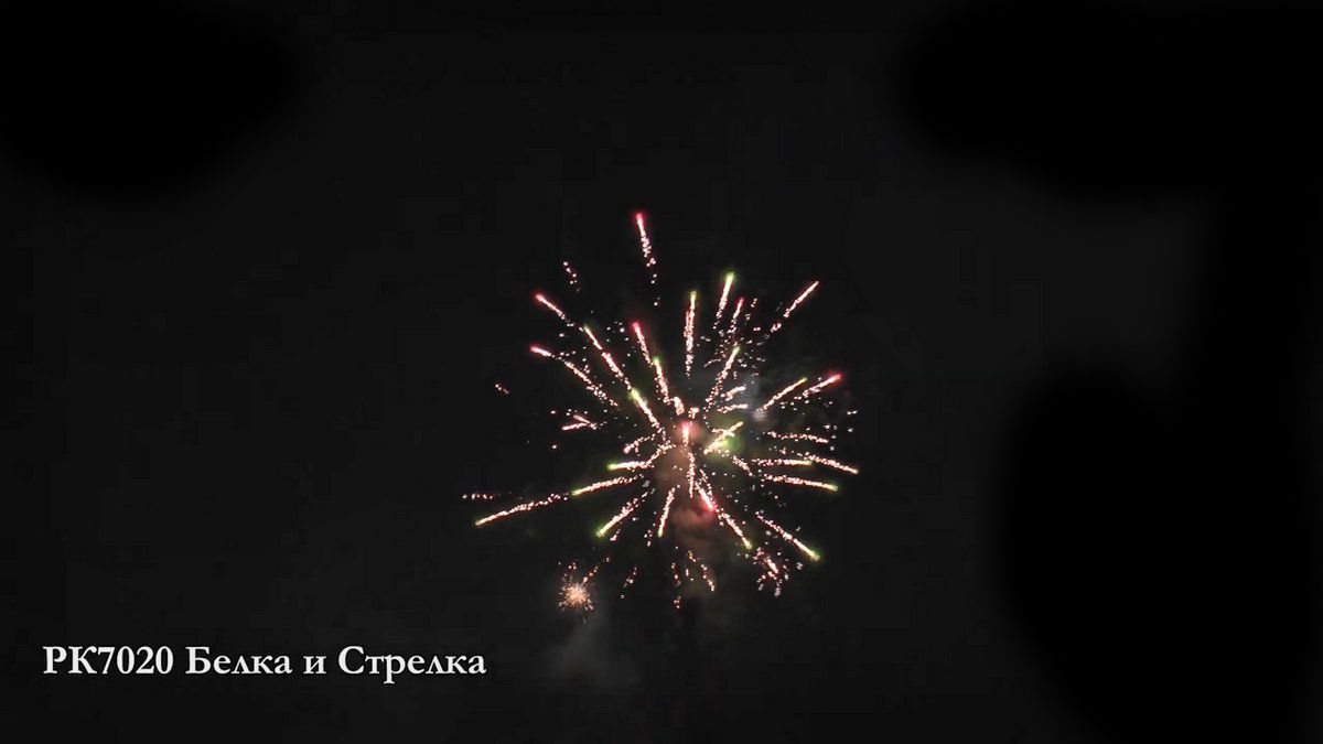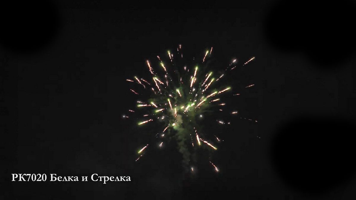 Красивое развлекательное шоу вас ждет с фейерверком Белка и Стрелка! И пусть этот салют не такой мощный, но все равно доставит массу положительных эмоций. Ведь он достаточно продолжительный: в нем 48 залпов, а время работы 80 секунд! А еще вас ждет 6 красивых эффектов. В небе раскинется красная, розовая и желтая хризантема с трещащим дождем. Потом последует зеленая и синяя пальма, окутанная трещащим облаком. Завершат шоу взлетающие со свистом ракеты, которые раскроются удивительно красивой хвостатой пальмой с трещащими огоньками.