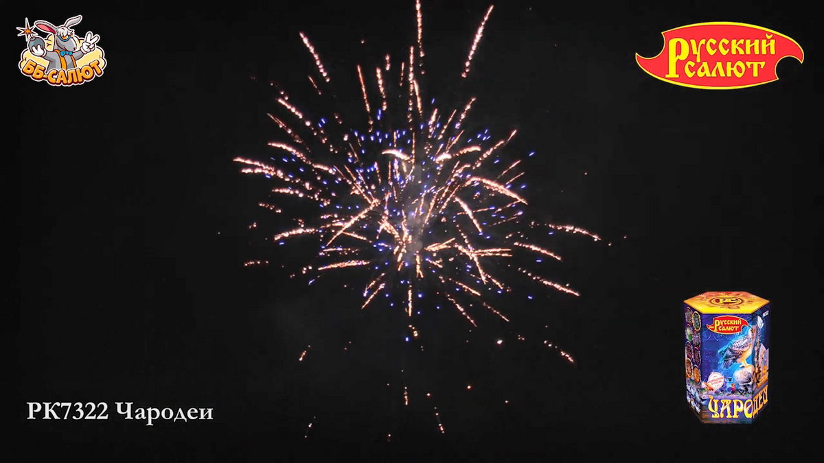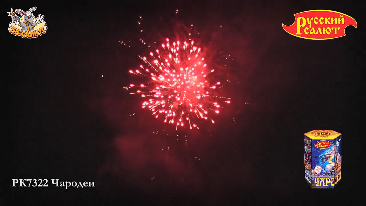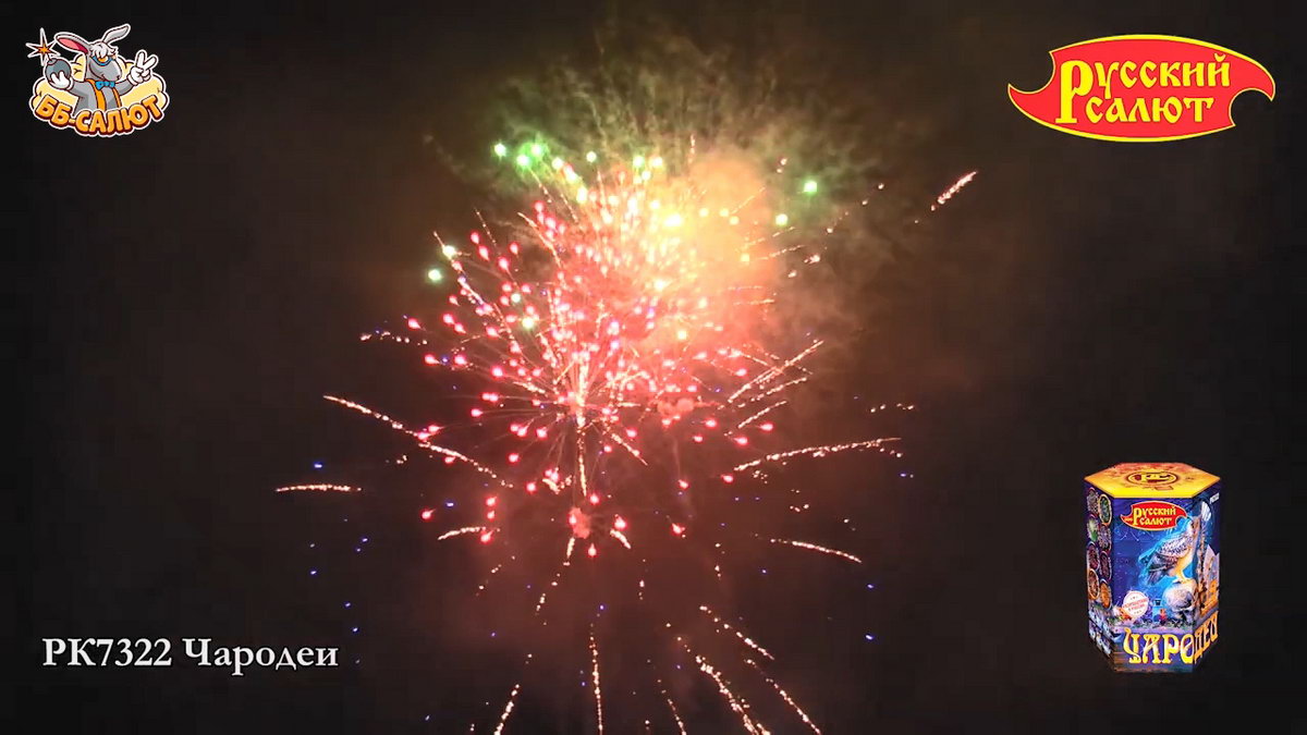 Фейерверк Чародеи включает в себя 19 залпов, которые раскрасят небо в разные цвета. И не стоит огорчаться, что здесь только один эффект. Но он самый яркий, насыщенный и, не секрет, любимый многими зрителями. Что же вас ждет? При каждом залпе по небу будет разлетаться крупный жемчуг. Он может быть зеленого, красного, фиолетового цвета. Жемчужины эффектно подсвечиваются парчовыми ивами и золотыми коронами. Поверьте, это красивое зрелище заставит ликовать вашу душу!