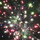 1. Красная комета с белыми и красными стробами. 2. Зеленые и красные хризантемы с синим крупным жемчугом. 3. Зеленый, синий и красный мерцающий бисер. 4. Финал: хвостатые синие и красные короны.