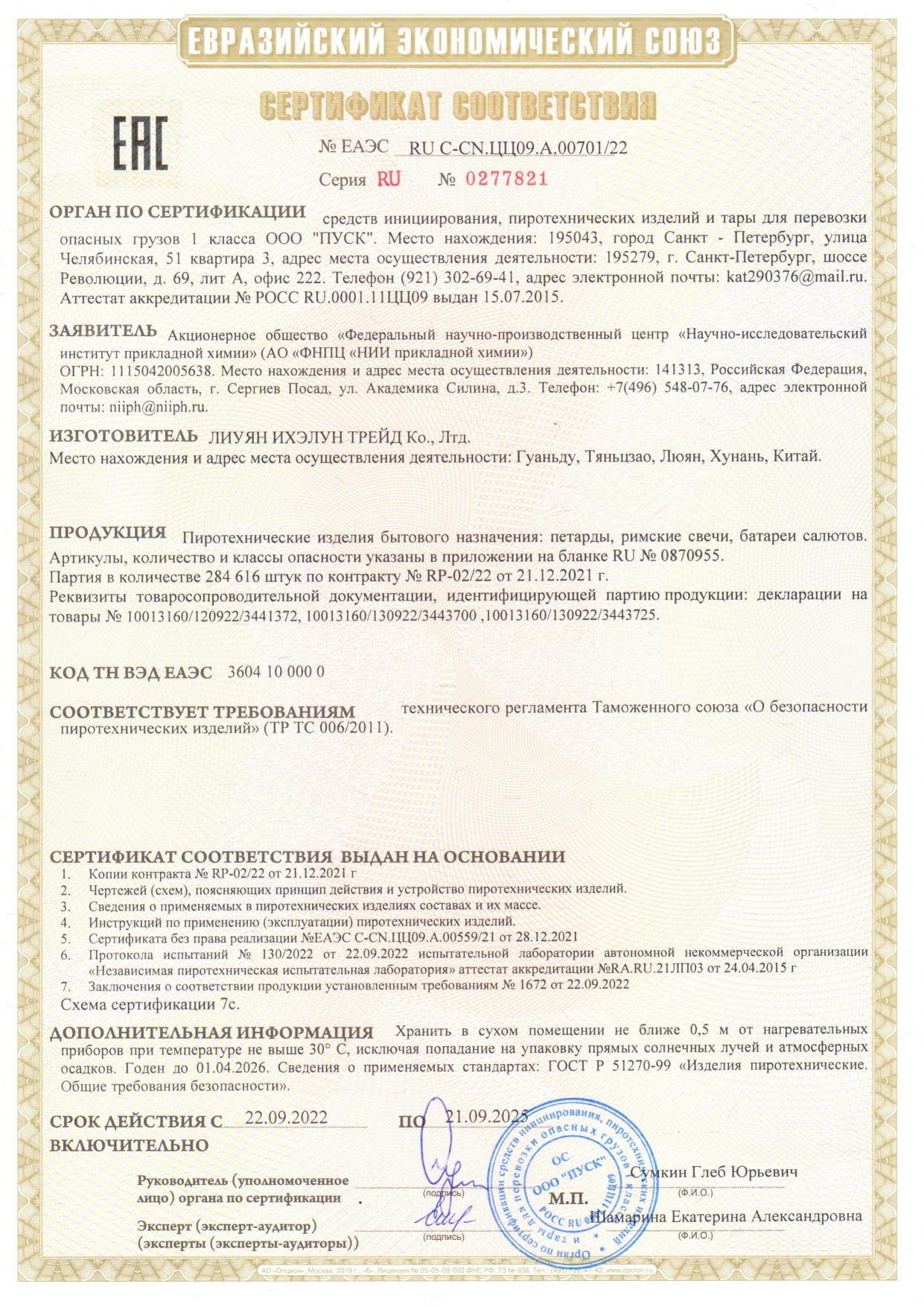 Магазин фейерверков ББ-Салют предоставляет гарантию на весь ассортимент интернет-магазина и розничных магазинов ББ-Салют! Мы торгуем пиротехникой самых лучших, проверенных торговых марок. Все изделия сертифицированы для продажи на территории России и имеют актуальный срок годности.