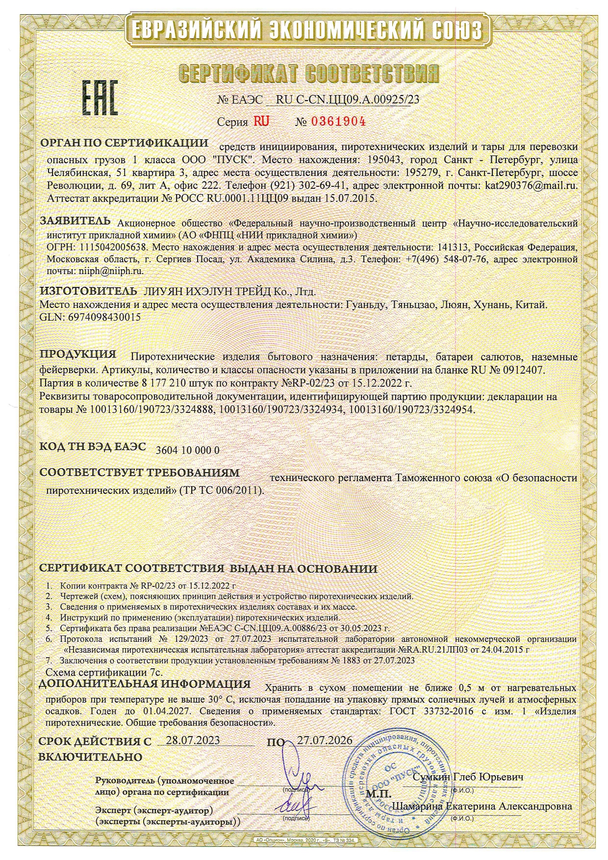 - Отработавшее изделие необходимо залить водой или засыпать снегом, а затем утилизовать с бытовым мусором.