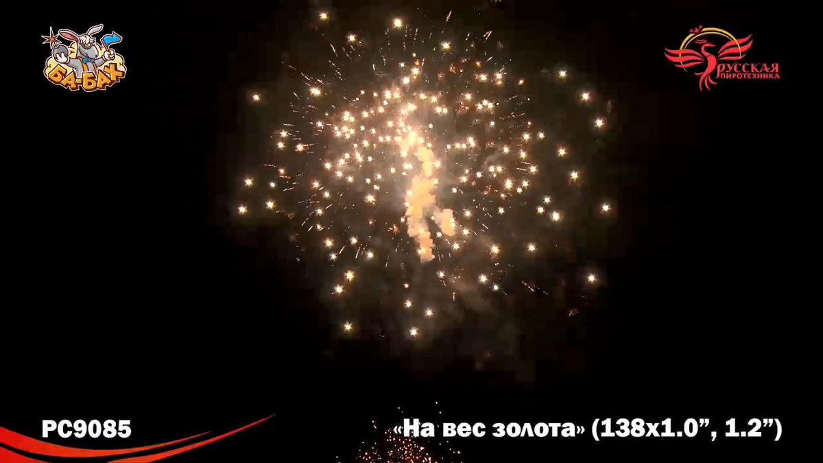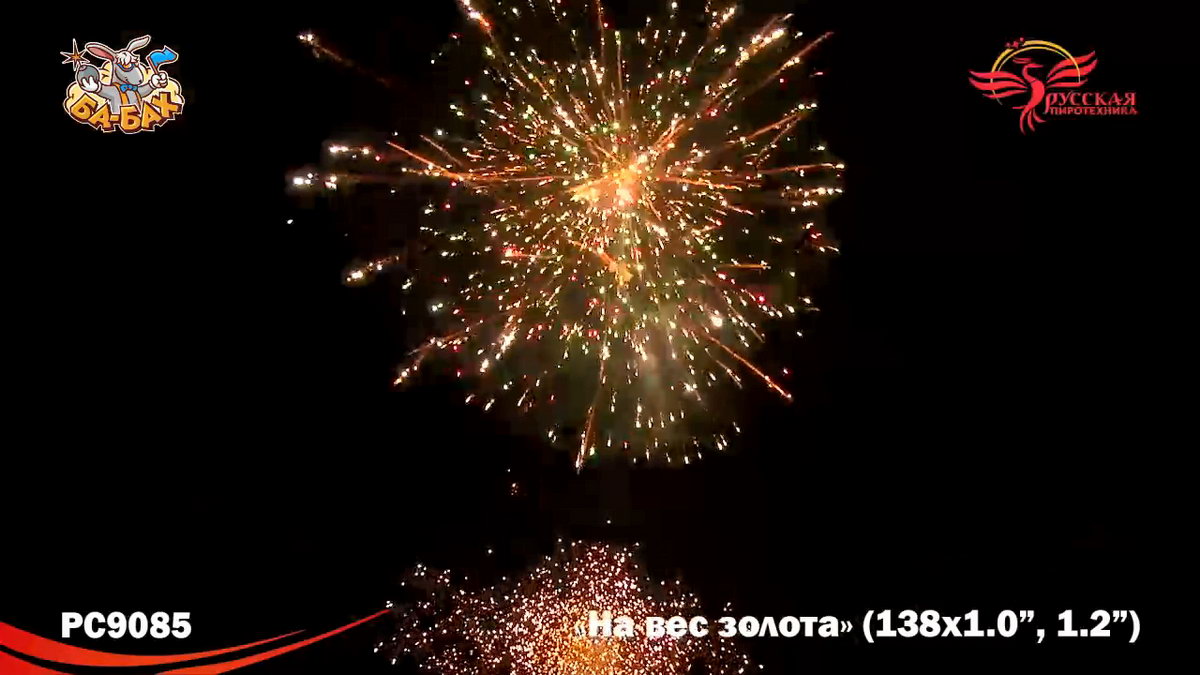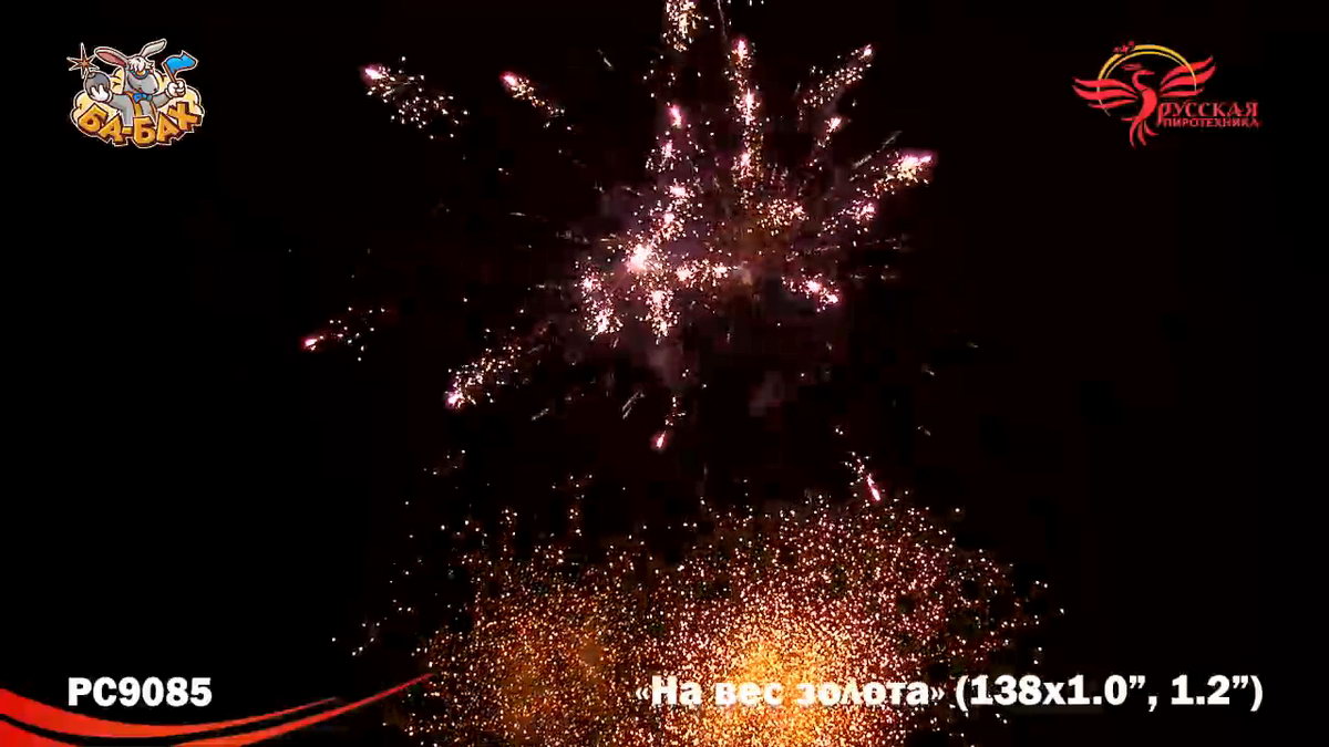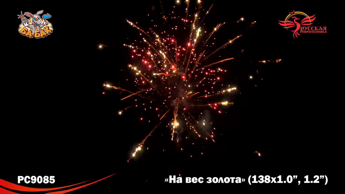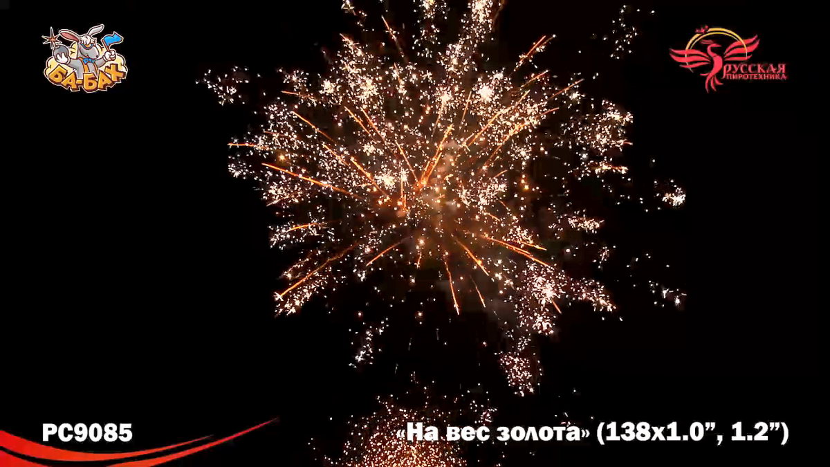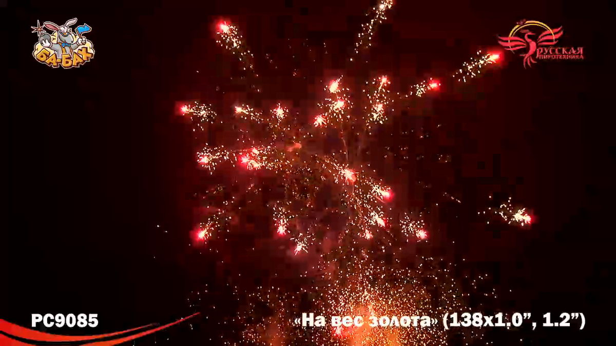 По-настоящему блистательная композиция пиротехнических эффектов - вот что такое новый мультикалиберный фейерверк от "Русской Пиротехники". И в самом деле, каждый из этих 138 зарядов - "На вес золота"! Здесь нет ничего лишнего, только отборные, самые впечатляющие эффекты: два уровня залпов, из которых нижний, "парковый" фейерверк - букеты из серебристых огней и трассирующие искры, а верхний - предлагает лучшее что есть в фейерверочном искусстве: ВЕЕРНЫЕ залпы фантастической красоты и мощи! Это настоящий VIP-фейерверк для самой искушенной публики: Ваших близких и друзей!