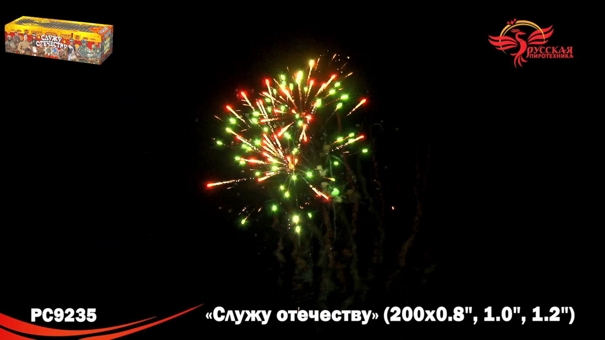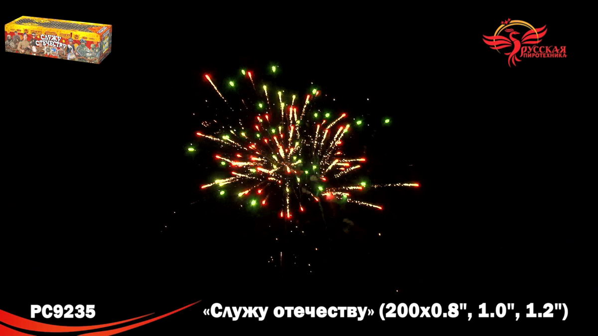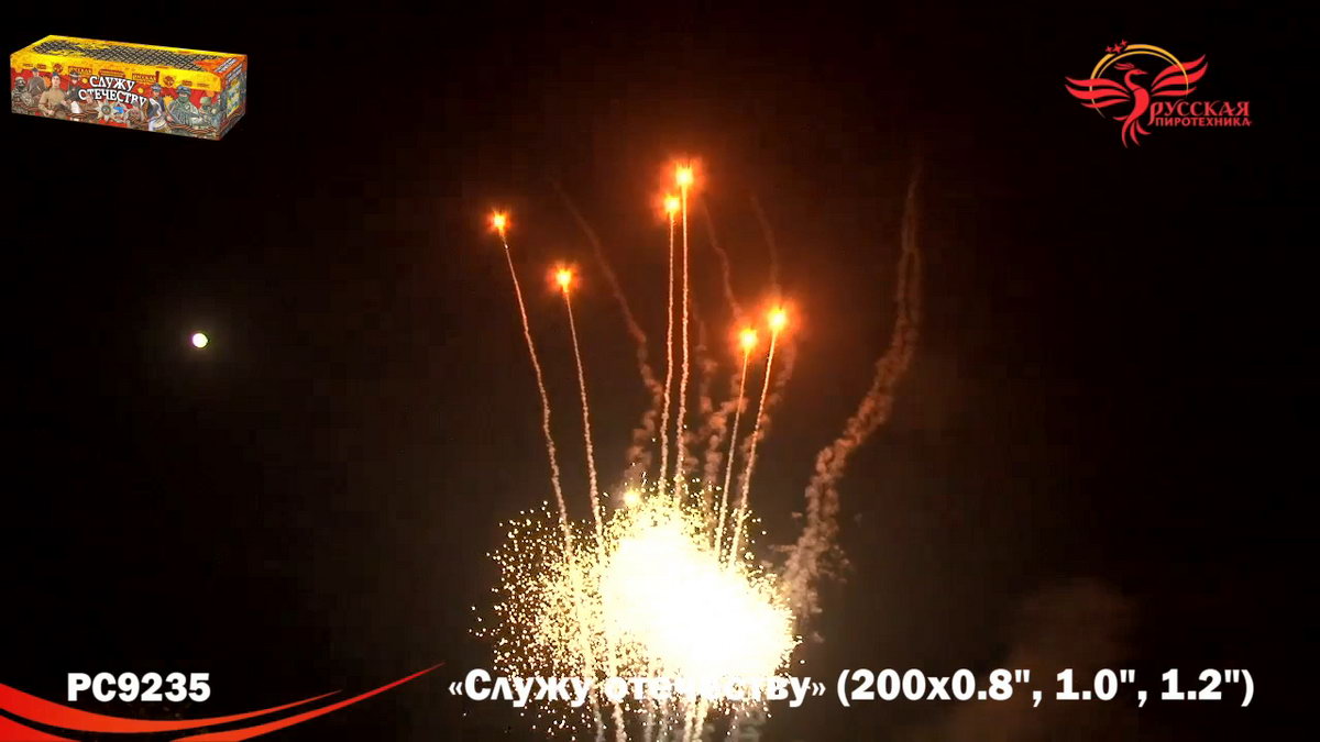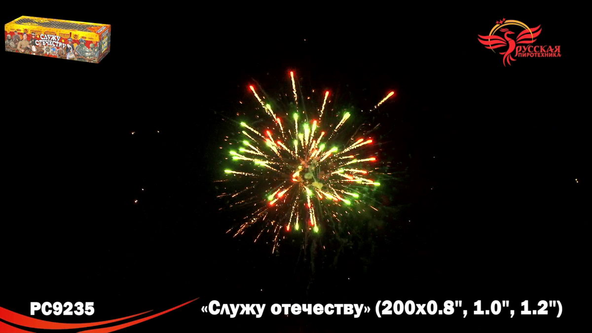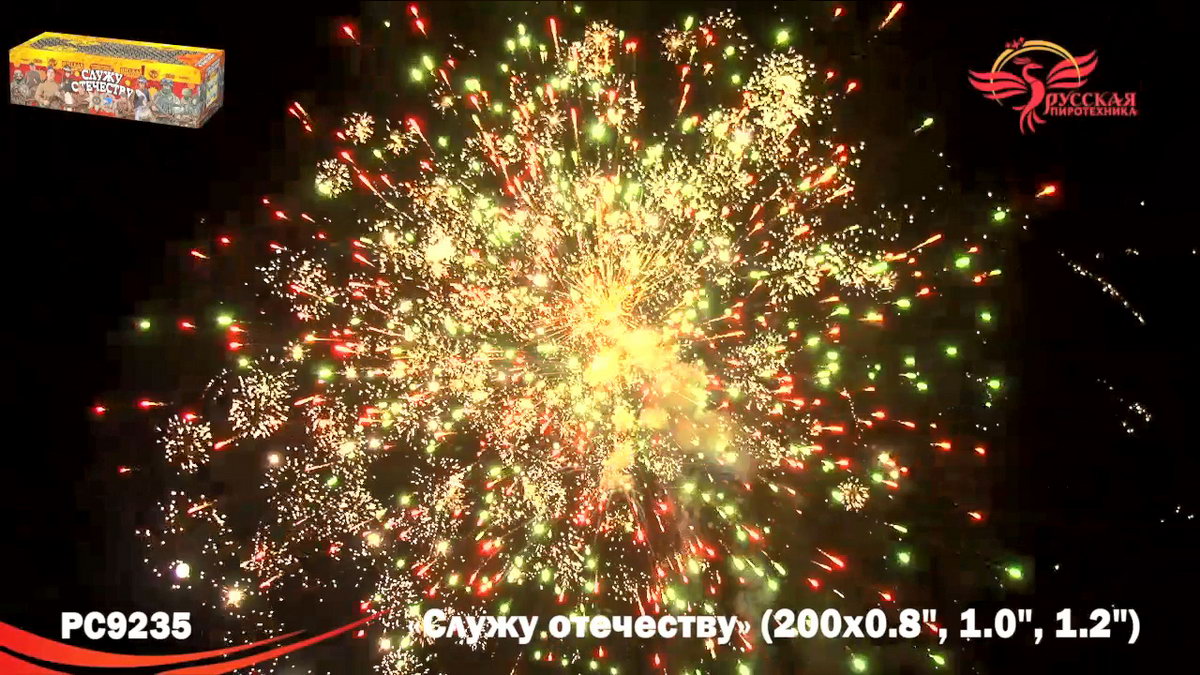 Фейерверки на военную тематику просто по определению должны быть самыми мощными, самыми яркими, красочными и разнообразными. Ведь в них воплощена национальная гордость страны, воспоминания о ее победах. Не стал исключеним салют "Служу Отечеству". Это феерическая по красоте, длительности и разнообразию эффектов супер-батарея на 220 выстрелов, среди которые есть невероятные веерные залпы. Такой салют не стыдно запустить на 9 мая или 23 февраля, он вполне может поспорить с большими "официальными" фейерверками!