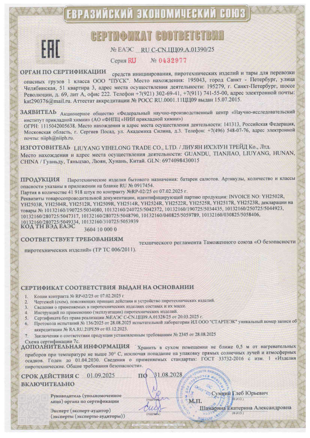 - К сожалению, мы не осуществляем доставку пиротехники в Калининградскую область, а также за пределы Российской Федерации.