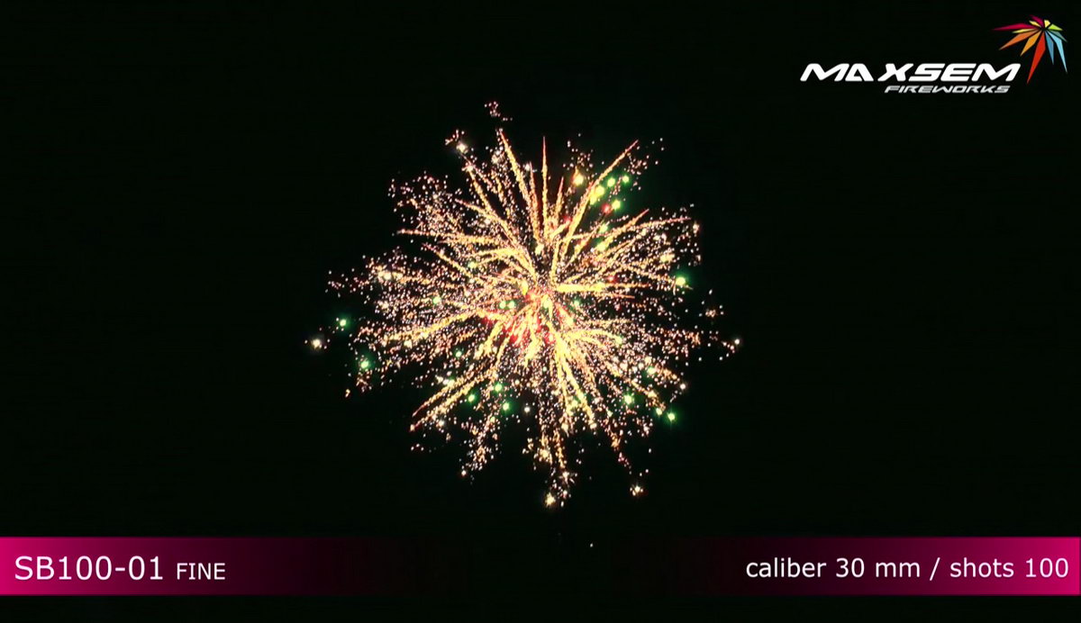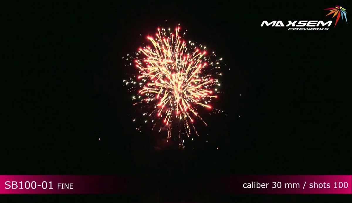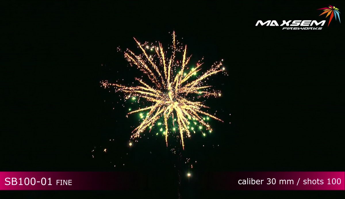 1. Красно-белые хризантемы, серебряные облака. 2. Золотистые парчовые пальмы, синие искры. 3. Золотистые пальмы с треском, красные и зеленые жемчужины. 4. Три мощных завершающих залпа, по одному на каждый из перечисленных эффектов.