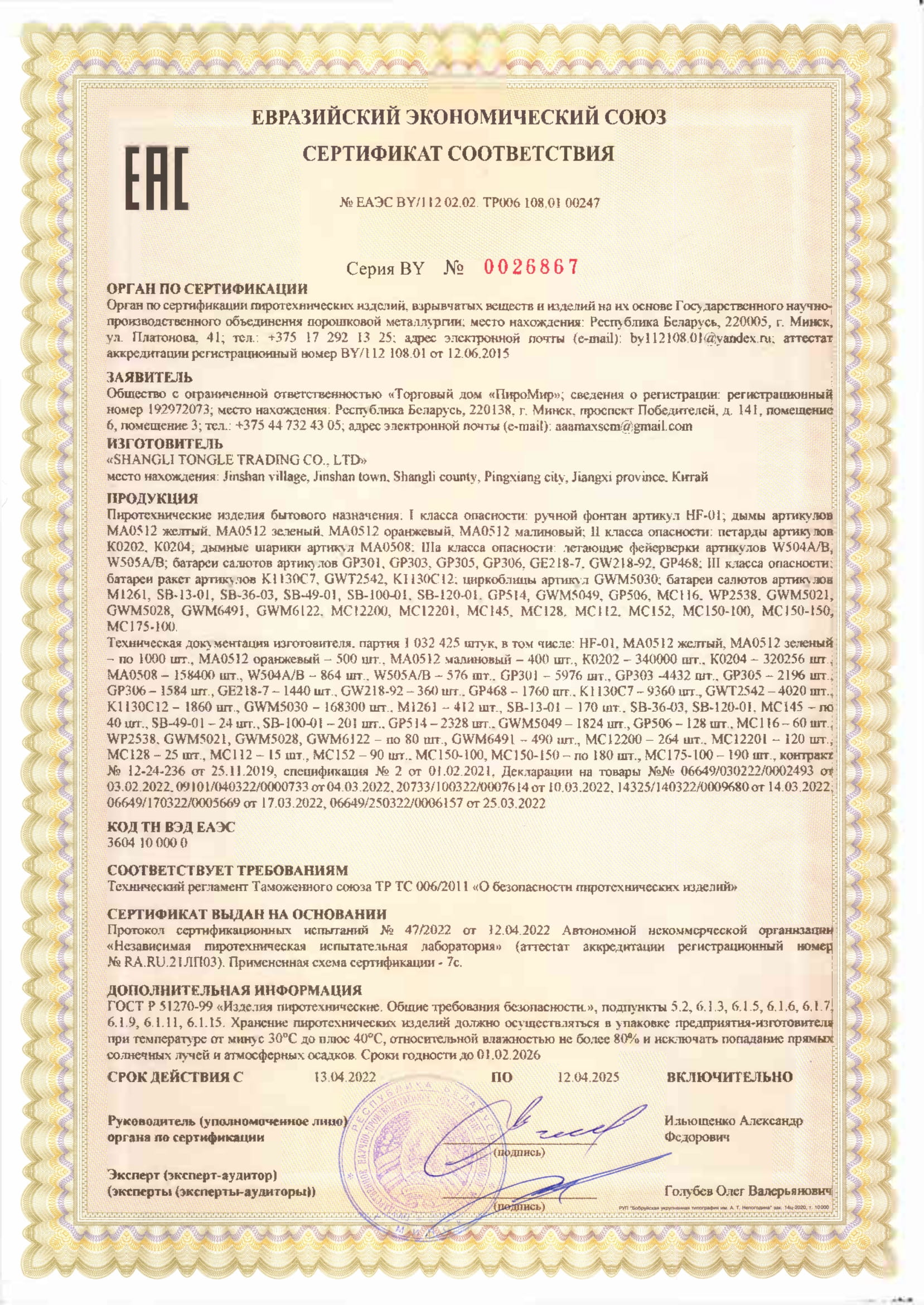 Магазин фейерверков ББ-Салют предоставляет гарантию на весь ассортимент интернет-магазина и розничных магазинов ББ-Салют! Мы торгуем пиротехникой самых лучших, проверенных торговых марок. Все изделия сертифицированы для продажи на территории России и имеют актуальный срок годности.