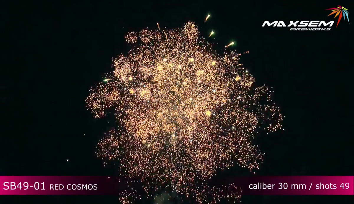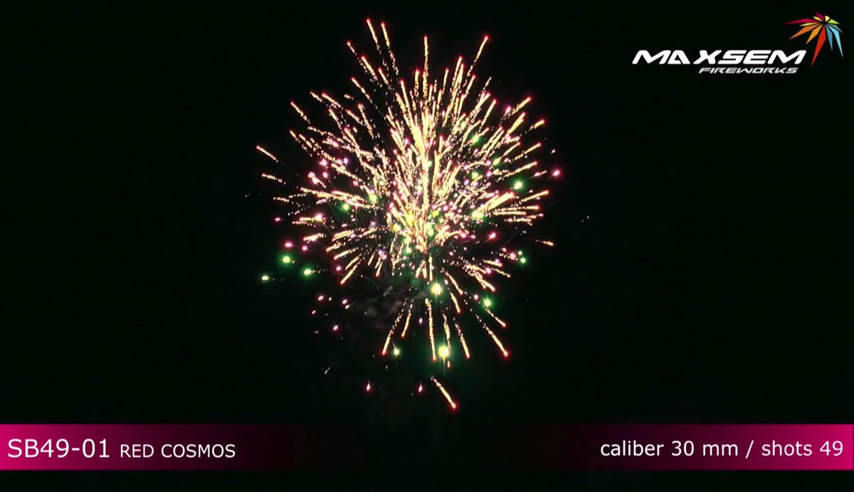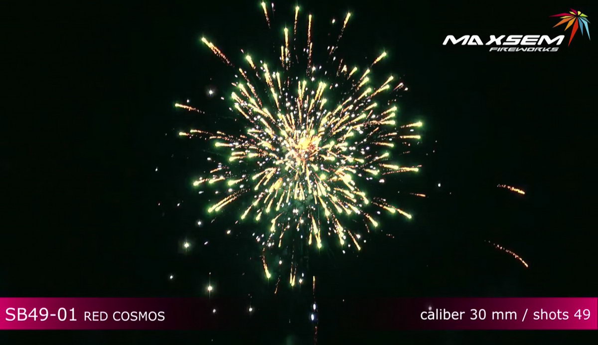1. Розово-голубые звездные сферы. 2. Сферы парчовых мерцающих искр. 3. Сферы пунцовых звезд с белыми хвостами. 4. Зелено-белые хризантемы, сферы мерцающих ультрамариновых и серебряных искр. 5. Финальный залп трещащих золотых хризантем.