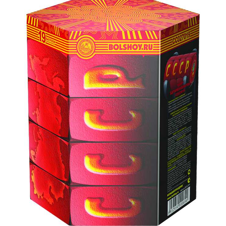 Если бы фейерверк "СССР" выпускался в советское время, он бы непременно получил "Знак качества", а его создатели - звание Ударников производства или даже Героев труда! Шутка ли - в небольшой салют на 19 зарядов впихнуть такое количество первосортных эффектов! Золотые хризантемы, трещащие жемчужные облака, золотые ивы с парчовым эффектом, серебряными, зелеными и синими искрами... достойный рабоче-крестьянский ответ загнивающей буржуазии, покупающей 300-залповые батареи!