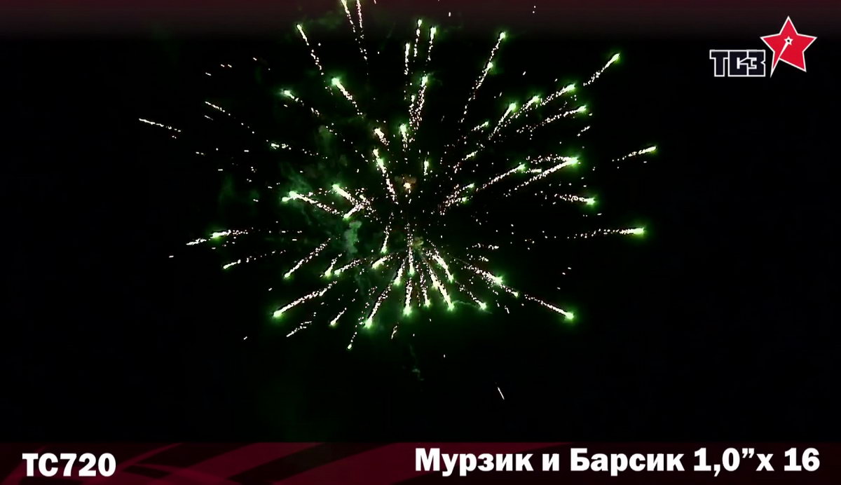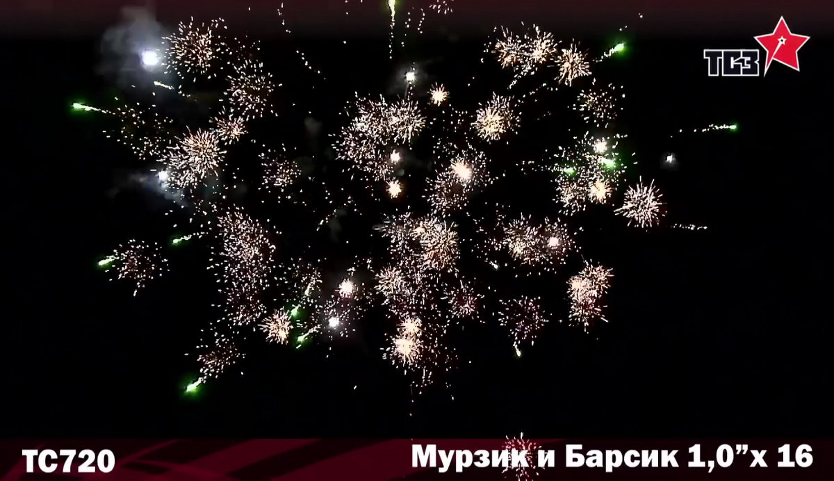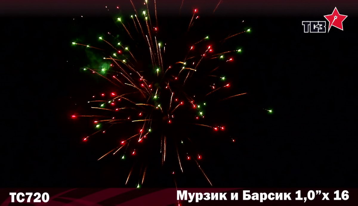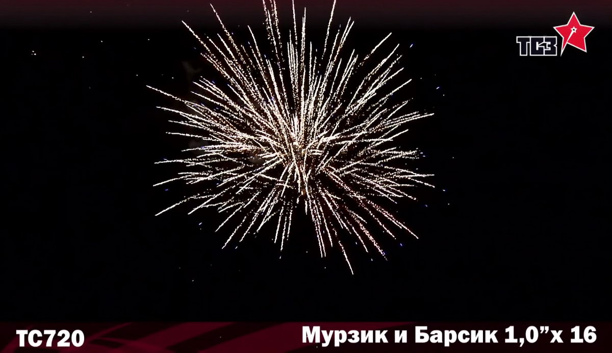 Чем же запомнится этот фейерверк? Ну, например, разрывающимися цветными кометами, после которых в небе вспыхивают золотые форсы, исчезающие красными и зелеными огнями! Трещащими сферами и серебристыми искрами, которые растворяются в ночной тишине. Звонкими синими огнями и одновременным треском множества огненных сфер! Два веселых усатых друга - Мурзик и Барсик - не дадут вам соскучиться!