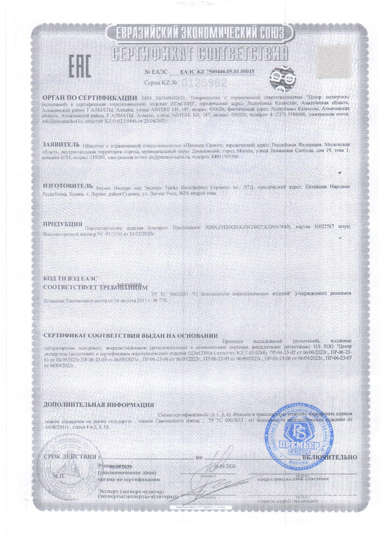 - К сожалению, мы не осуществляем доставку пиротехники в Калининградскую область, а также за пределы Российской Федерации.