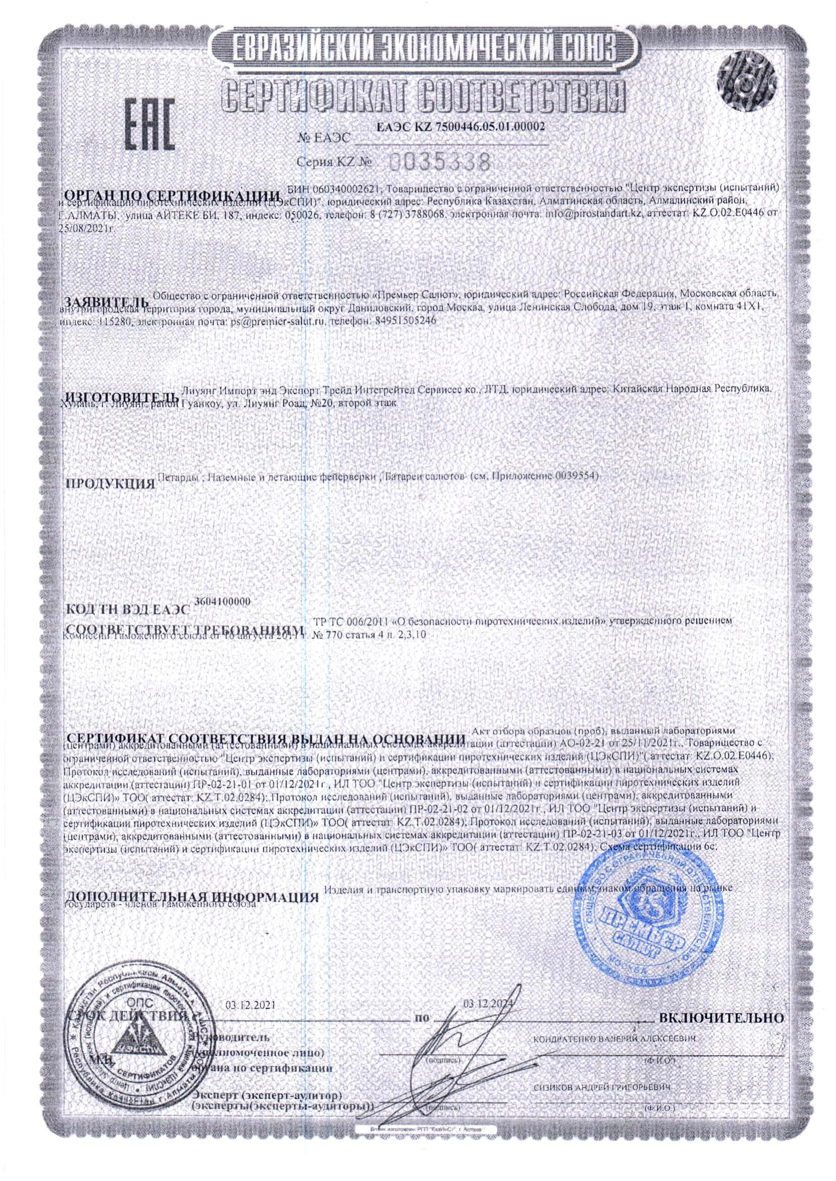 - Обратите внимание, что при покупке фейерверка Вы несете полную ответственность за соблюдение правил хранения, техники безопасности и инструкции по запуску изделия!