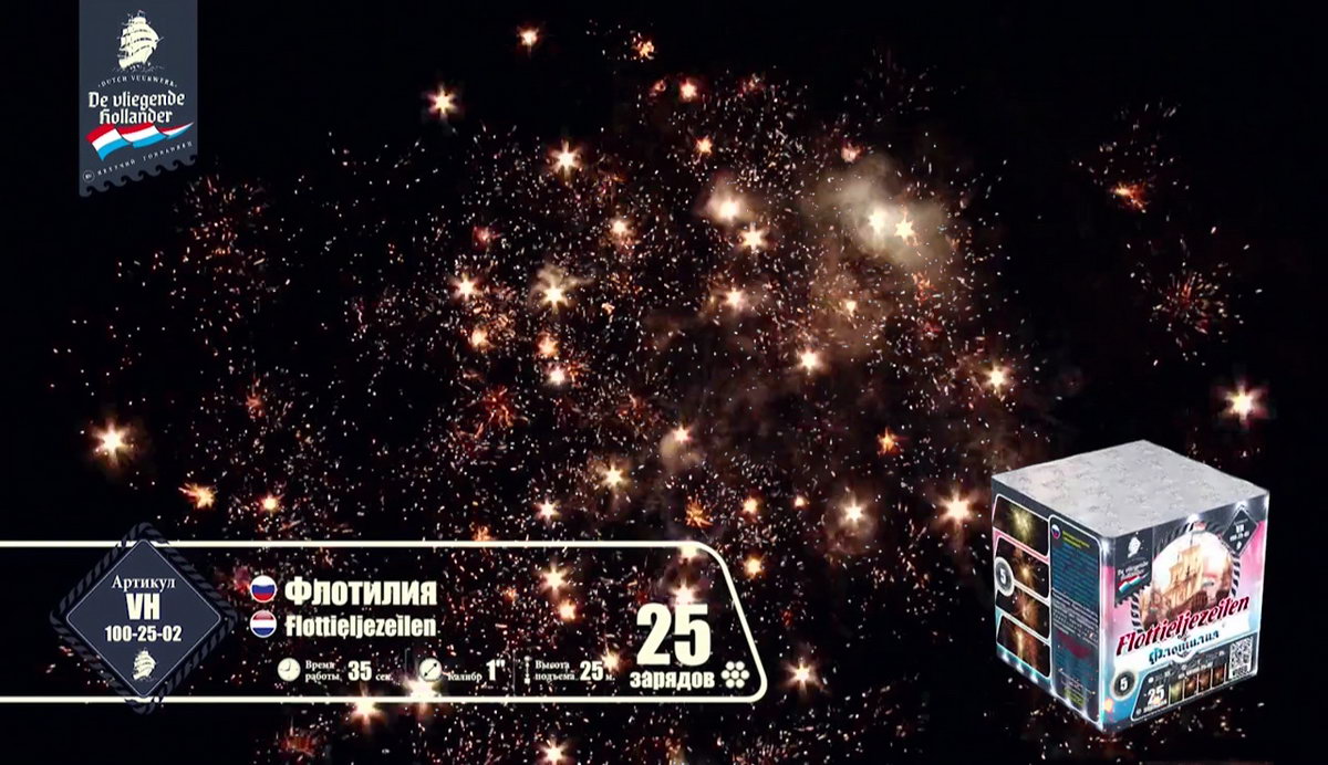 Станьте частью группы поддержки сухопутных войск нашей военно-морской пиротехнической "Флотилии", ведь в одиночку ей не справиться! От Вас требуется пристальное внимание, восторг, положительные эмоции, а от пиротехнического дивизиона прекрасных парусников - доставить Вам, как зрителю воздушного сражения, огромное количество удовольствия и позитива. Вступают в борьбу с темными силами ночи мощные парусные суда, прибывшие из прошлых веков: агрессивно-яркие алые боевые огни, мерцание белоснежных вспышек от выстрелов, пламенные блестящие языки, насыщенные крупные зеленые огни с мелкими золотыми искорками, а в конце - шумный треск и облако искр, мелких частей от разорвавшегося боевого пиротехнического снаряда. Сражение продолжается: розовыми и лимонными сферами, огненными тонкими горящими стрелами, зелеными огнями и мелкими искрами, которые разлетаются мелким порохом. Финальные залпы боевых пиротехнических орудий - огромный масштабный взрыв трещащей золотой "шрапнели". И наконец-то, долгожданная победа! Теперь можно отправляться к гражданским, в порт и праздновать успешную морскую битву. Чем? Конечно же, карибским ромом! Только будьте аккуратны - ром вызывает шторм и качку! А морякам завтра опять в плавание - выполнять очередное боевое задание!
