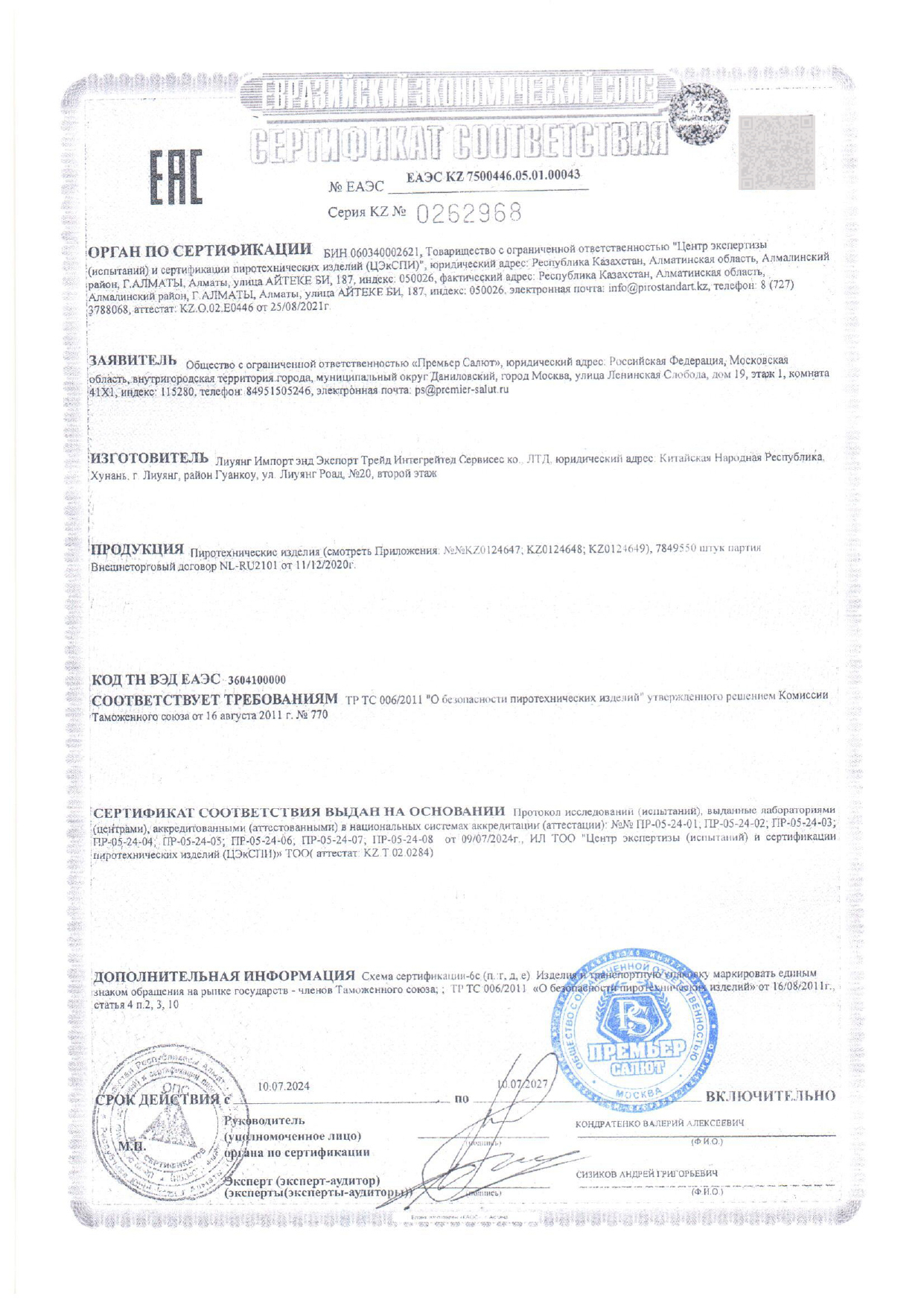 - К сожалению, мы не осуществляем доставку пиротехники в Калининградскую область, а также за пределы Российской Федерации.