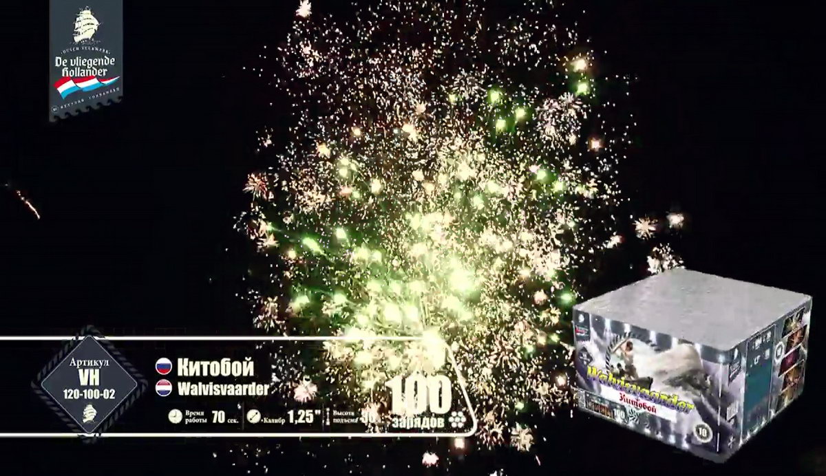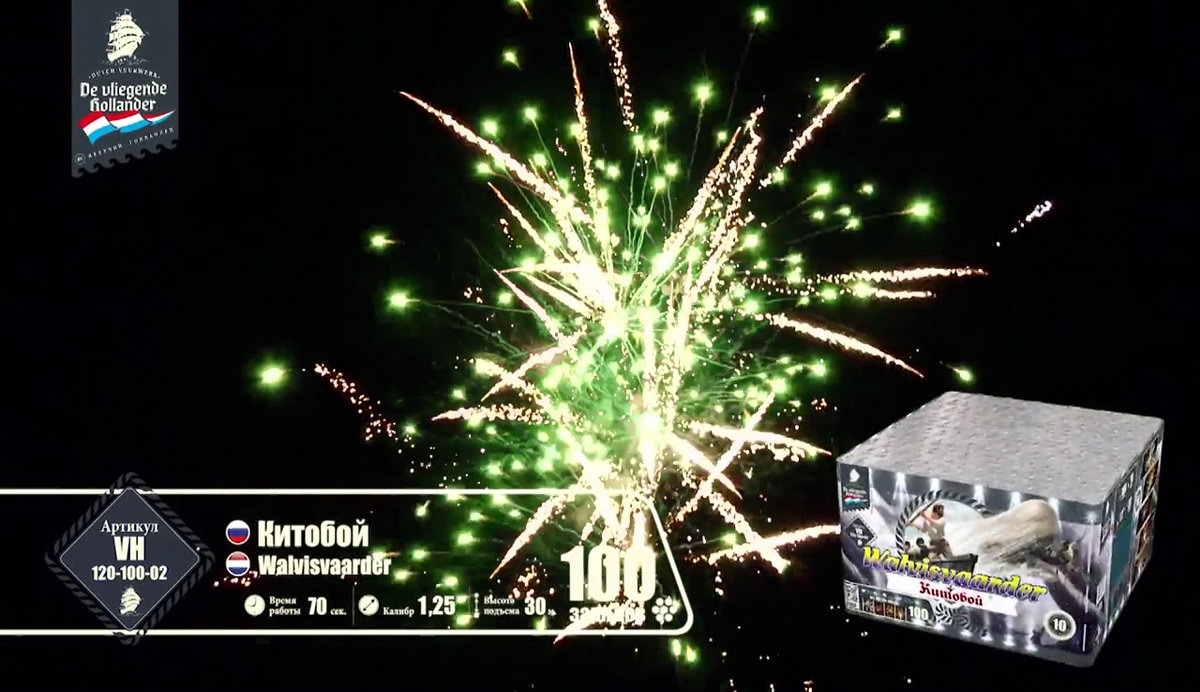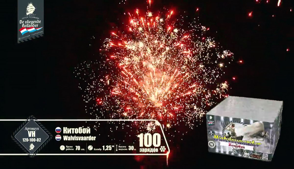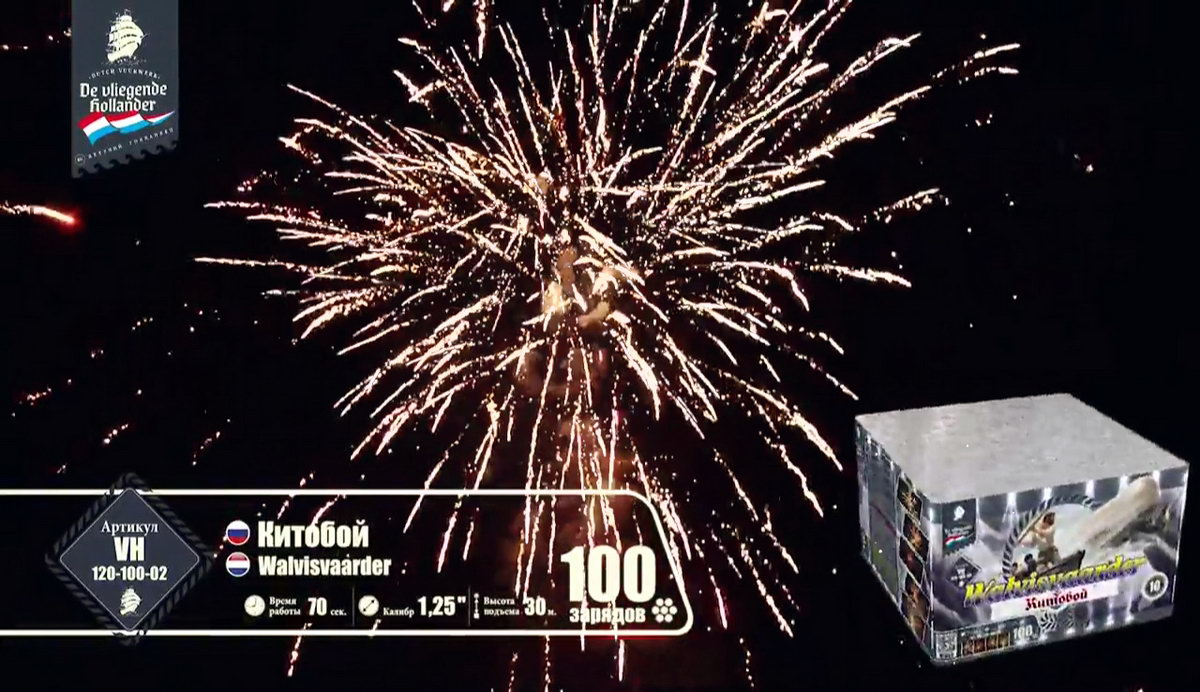 Этот фейерверк бьет прямо в цель, сражая всех наповал своей красотой, а еще он очень громкий, так что все вокруг будут не только видеть, но и слышать, что у вас - настоящий праздник! Фейерверк "Китобой" летит, словно запущенный мощной рукой острый гарпун, он врывается в темный бархат неба и - чудо из чудес! - вырисовывает на его куполе роскошные сияющие узоры!