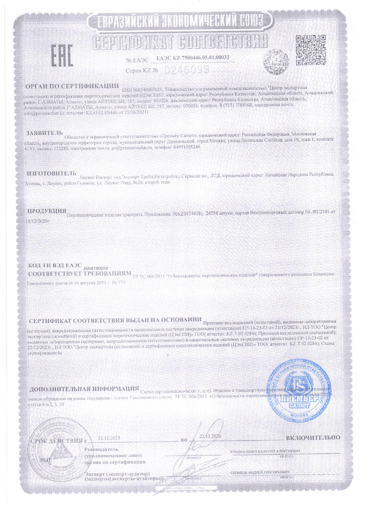 Магазин фейерверков ББ-Салют предоставляет гарантию на весь ассортимент интернет-магазина и розничных магазинов ББ-Салют! Мы торгуем пиротехникой самых лучших, проверенных торговых марок. Все изделия сертифицированы для продажи на территории России и имеют актуальный срок годности.