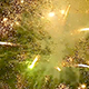 1. Красные мерцающие хвосты (ива) и синие звезды. 2. Красно-зеленая мерцающая сфера (пион). 3. Мерцающая золотые хвосты (ива) и красные звезды. 4. Сфера золотых мерцающих хвостов с переходом в красные звезды (цветная хризантема) и синие звезды. 5. Зеленые звезды с пышными хвостами (кокос) и облако золотого треска (трещащая хризантема).