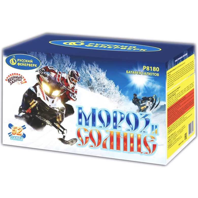 Еще один фейерверк на новогоднюю тематику - "Мороз и солнце". Это 52 красочных выстрела, выполненных в трех калибрах. Преимущество мультикалиберных фейерверков, таких, как "Мороз и солнце" - сочетание доступной цены, эффектности и разнообразия. Крупный калибр 1,25 дюйма создает мощную концовку, а более мелкий калибр отвечает за приличную продолжительность фейерверка. Цветовые сочетания эффектов яркие, броские. В общем, лучше салюта для новогодней ночи найти будет нелегко!