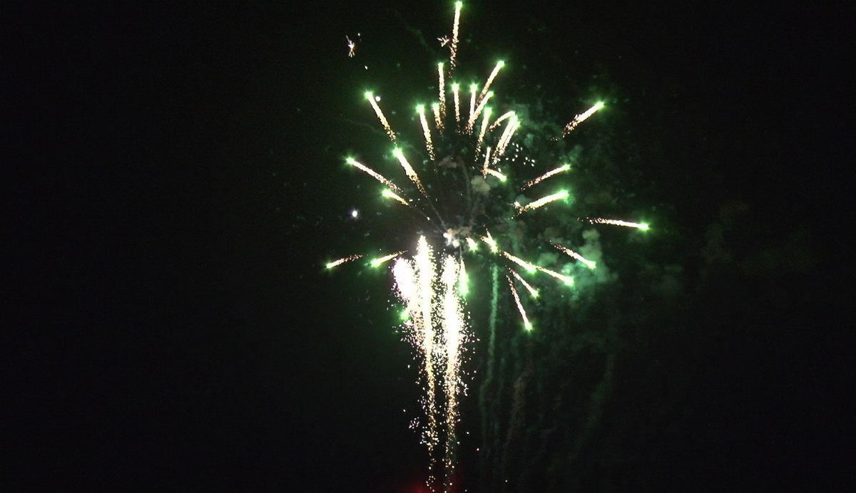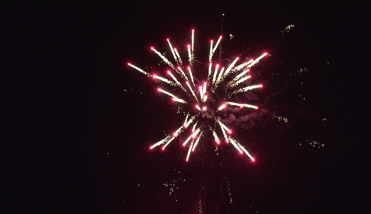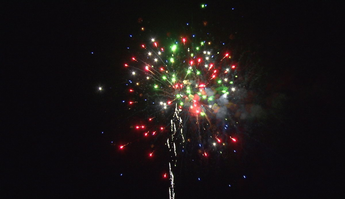 1. Искристые трещащие трассы, свистящие элементы, разноцветные кометы, разрываются сферами из трещащих огней и серебряных форсов с красными огнями в центре. 2. Трещащие огни и серебряные форсы с зелеными огнями в центре. 3. Трещащие огни и серебряные форсы в центре. 4. Красные, зеленые, синие и трещащие огни. 5. Серебряные искристые форсы и трещащие огни.
