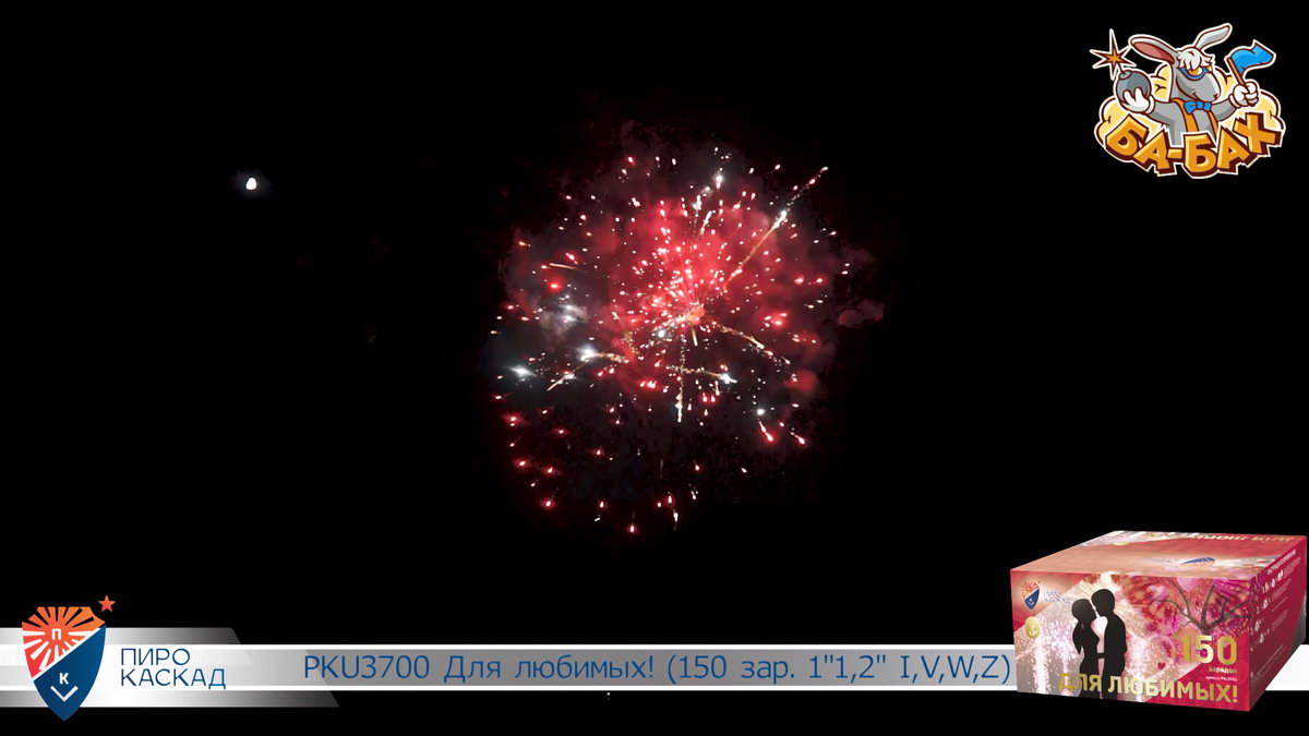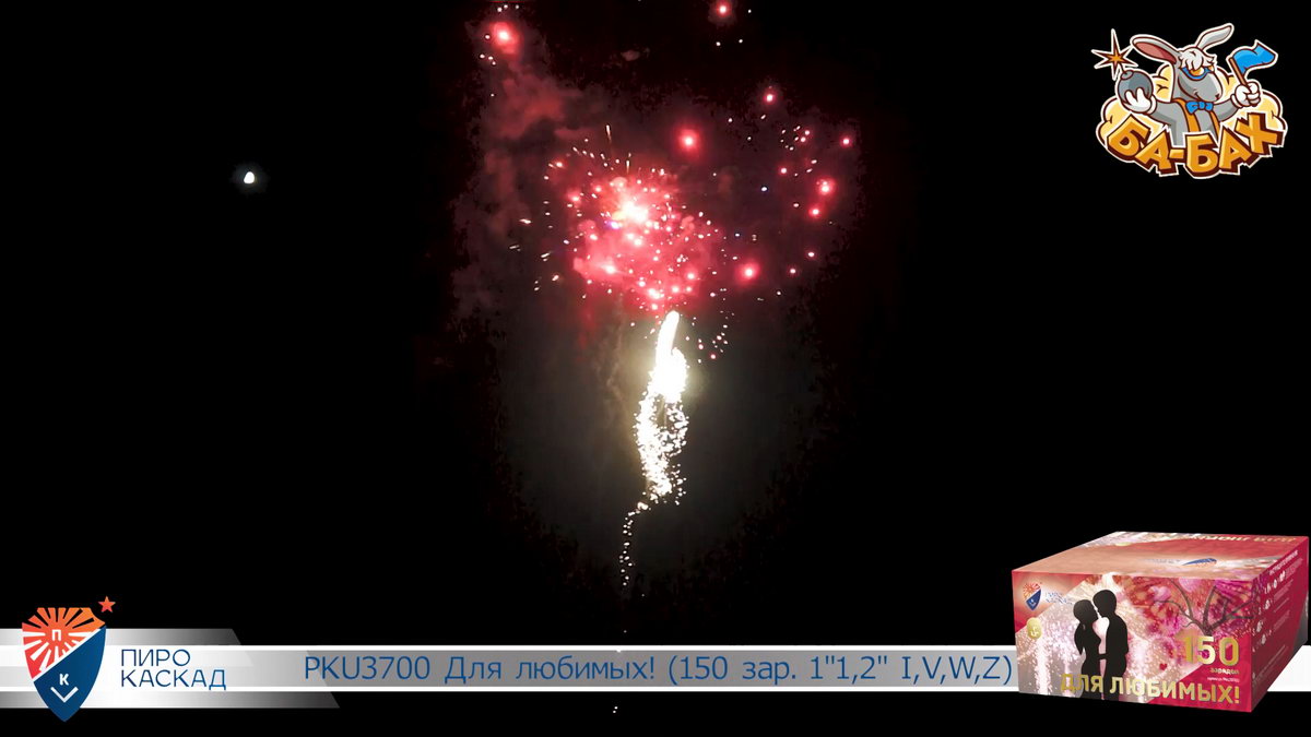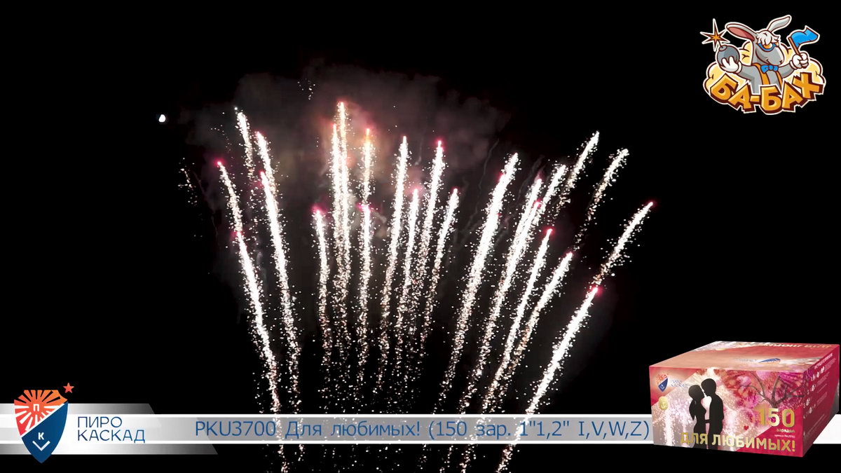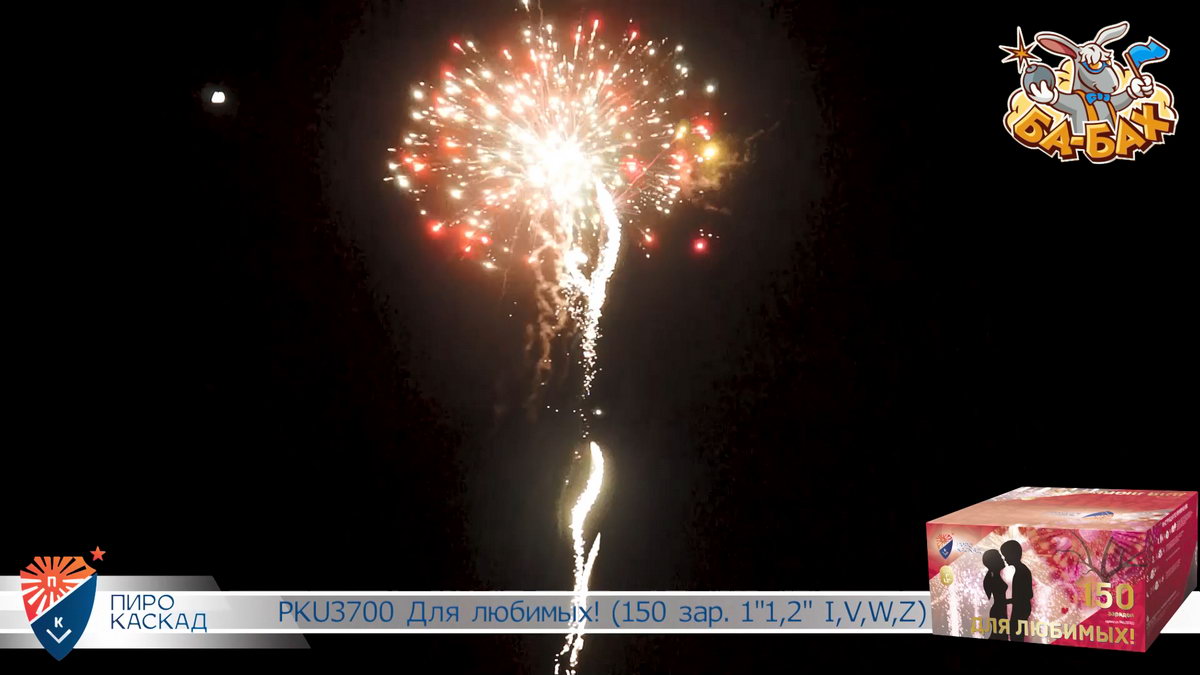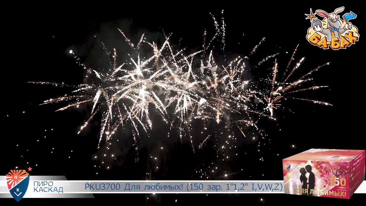 Все начинается с жизнерадостных комет алого цвета и красных георгинов. Цвета любви и яркой жизни! Дальше на сцену выходит зеленый цвет, который сверкает в драгоценных георгинах. Яркий эффект производят серебряные вращающиеся спиральки, которые появляются между шикарными разноцветными кометами. В салюте присутствуют и золотые короны, переливающиеся разноцветьем красных, зеленых и фиолетовых камней. Особо впечатляют звездные водопады и финальный совершенно нереальный букет из серебристого мерцания с синими георгинами с золотыми волнами! Фейерверк "Для любимых" - это очень особенный салют для самых важных в вашей жизни людей!