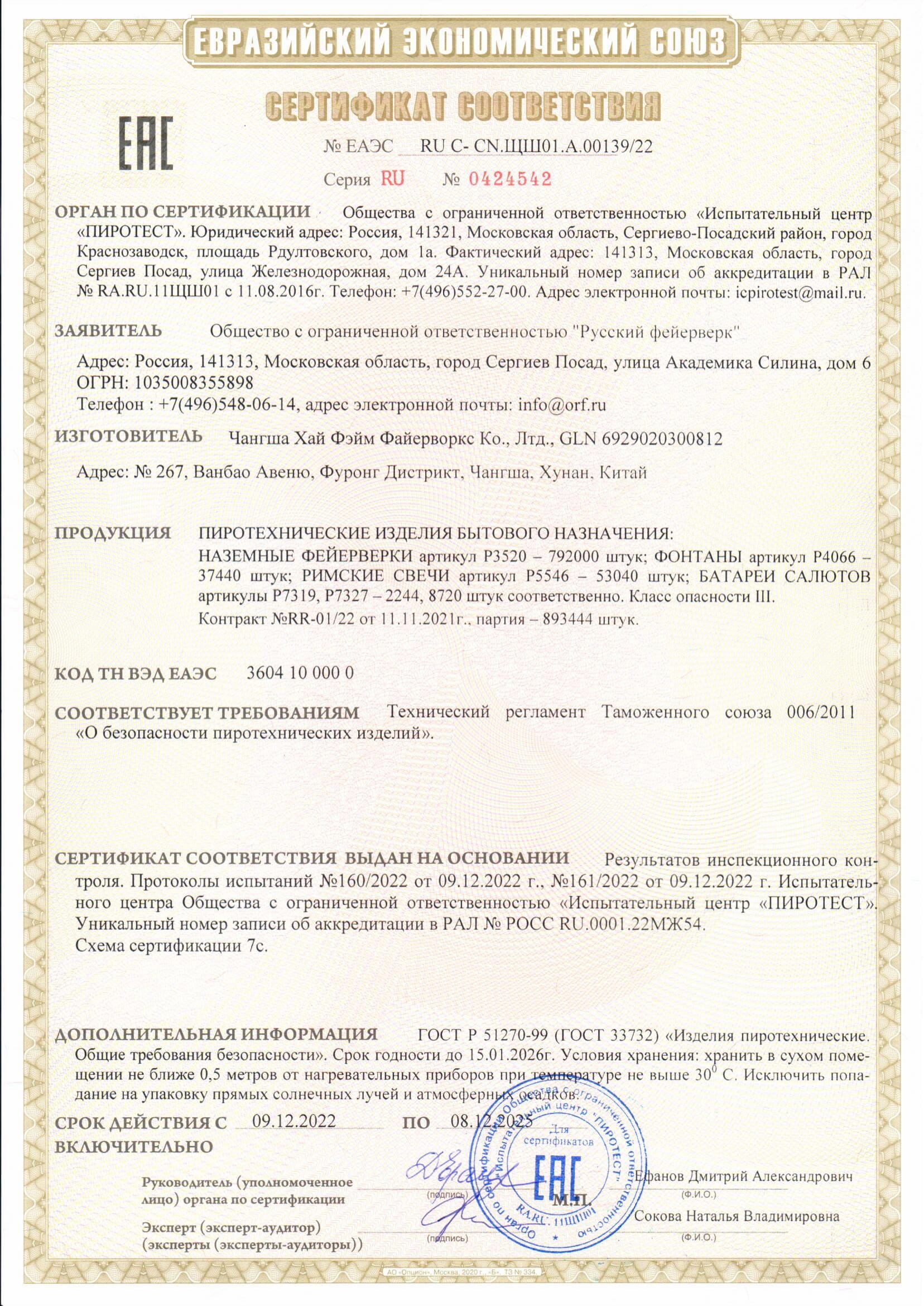 Магазин фейерверков ББ-Салют предоставляет гарантию на весь ассортимент интернет-магазина и розничных магазинов ББ-Салют! Мы торгуем пиротехникой самых лучших, проверенных торговых марок. Все изделия сертифицированы для продажи на территории России и имеют актуальный срок годности.