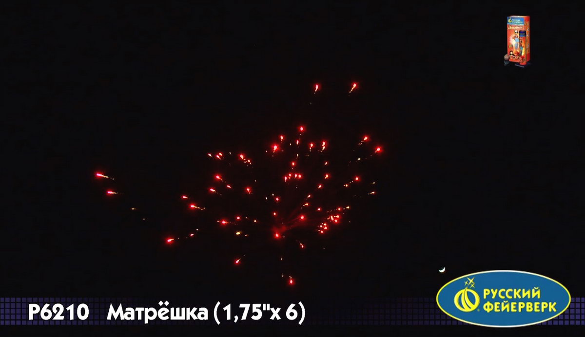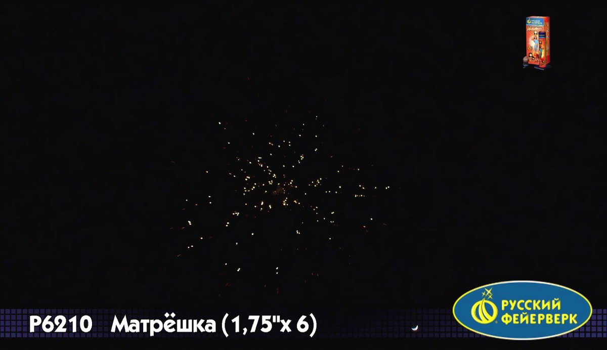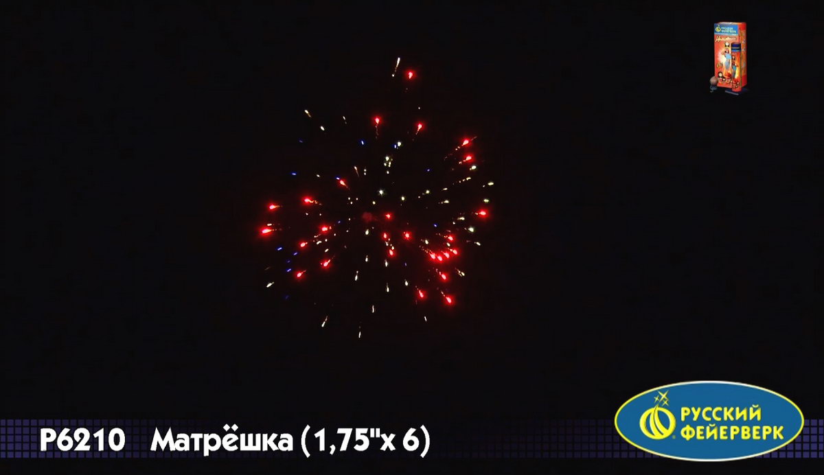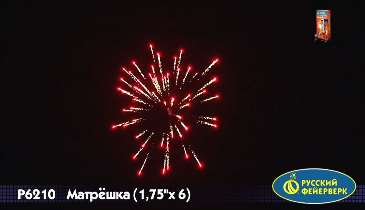 Набор фестивальных шаров "Матрешка" запускает пиротехнические шары диаметром 43мм (1.75 дюйма) на высоту сорока метров. Шары взрываются большими разноцветными пионами из красных, белых и зеленых огней на высоте примерно 30 метров. "Матрешка" идеально подходит тем, кто впервые пускает фестивальные шары и не хочет слишком много тратить на новый для себя вид пиротехники.