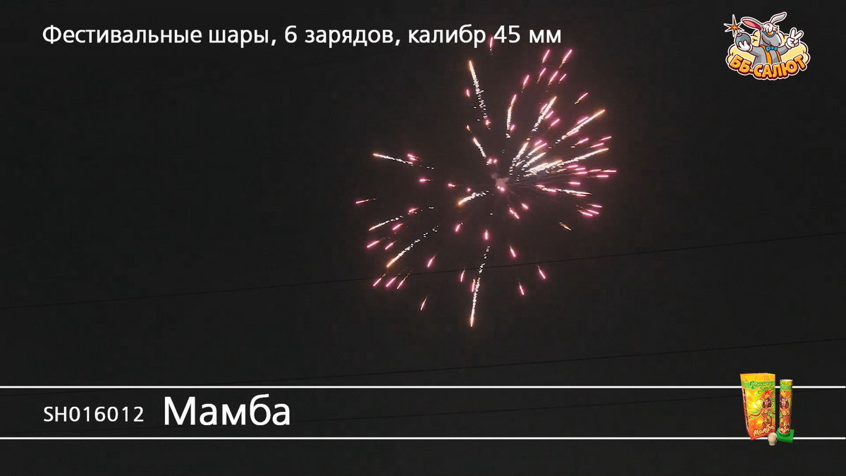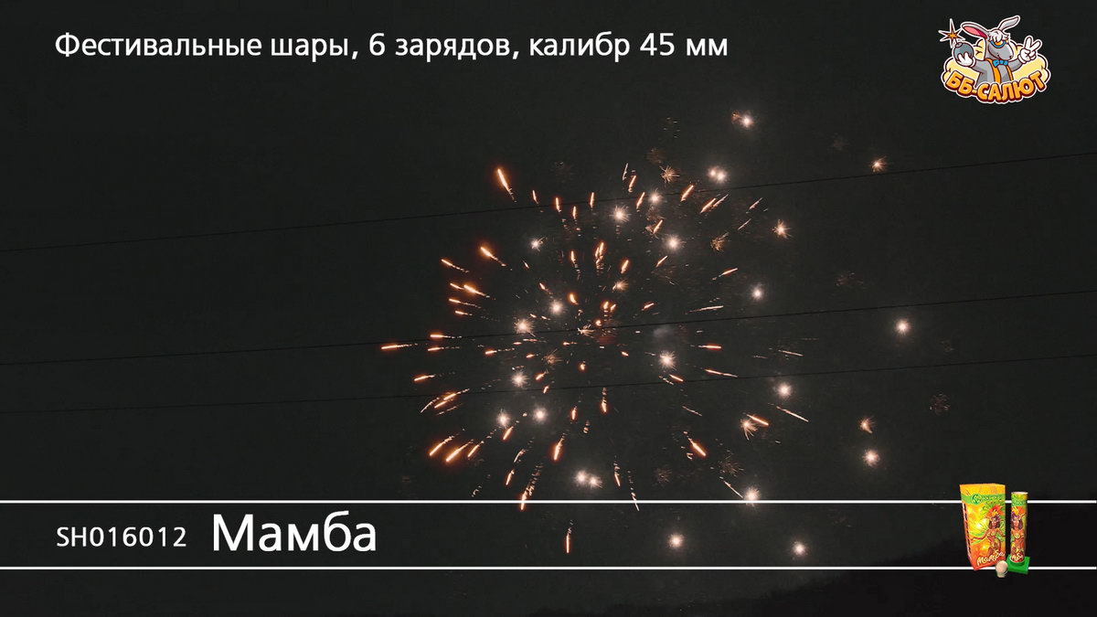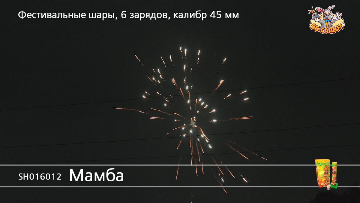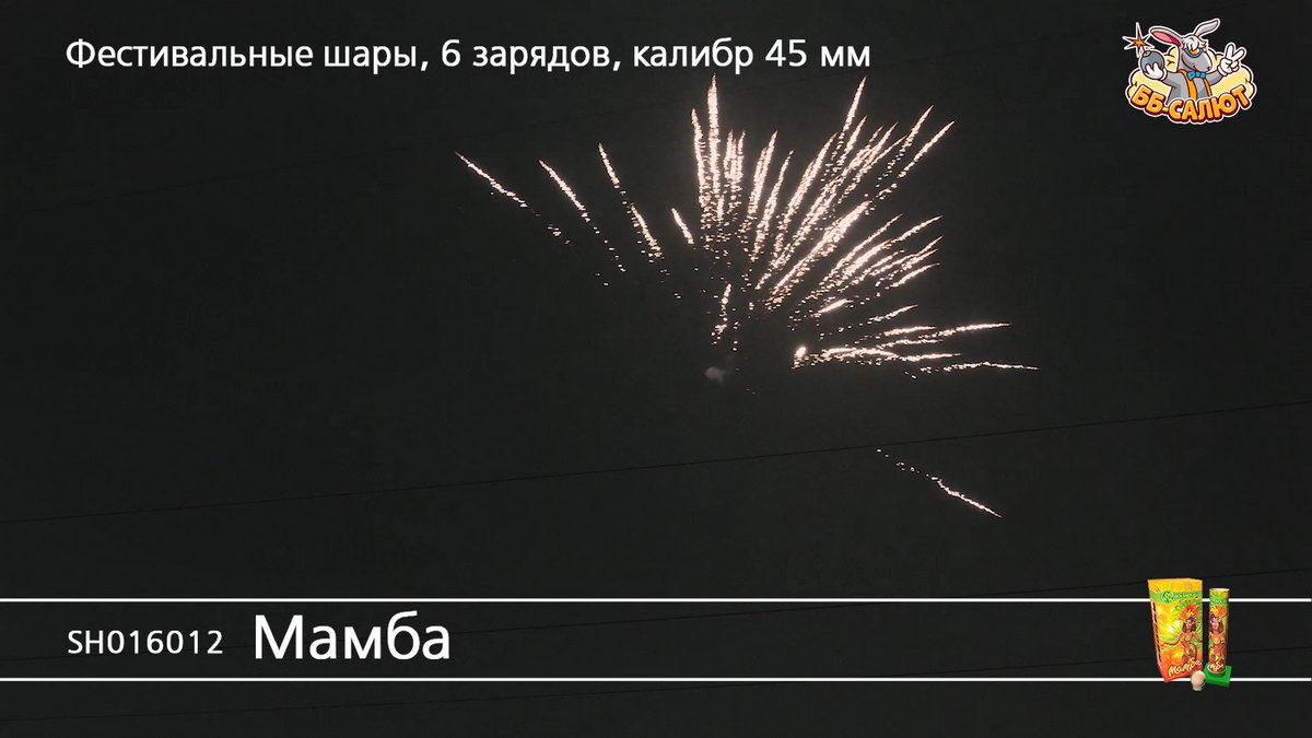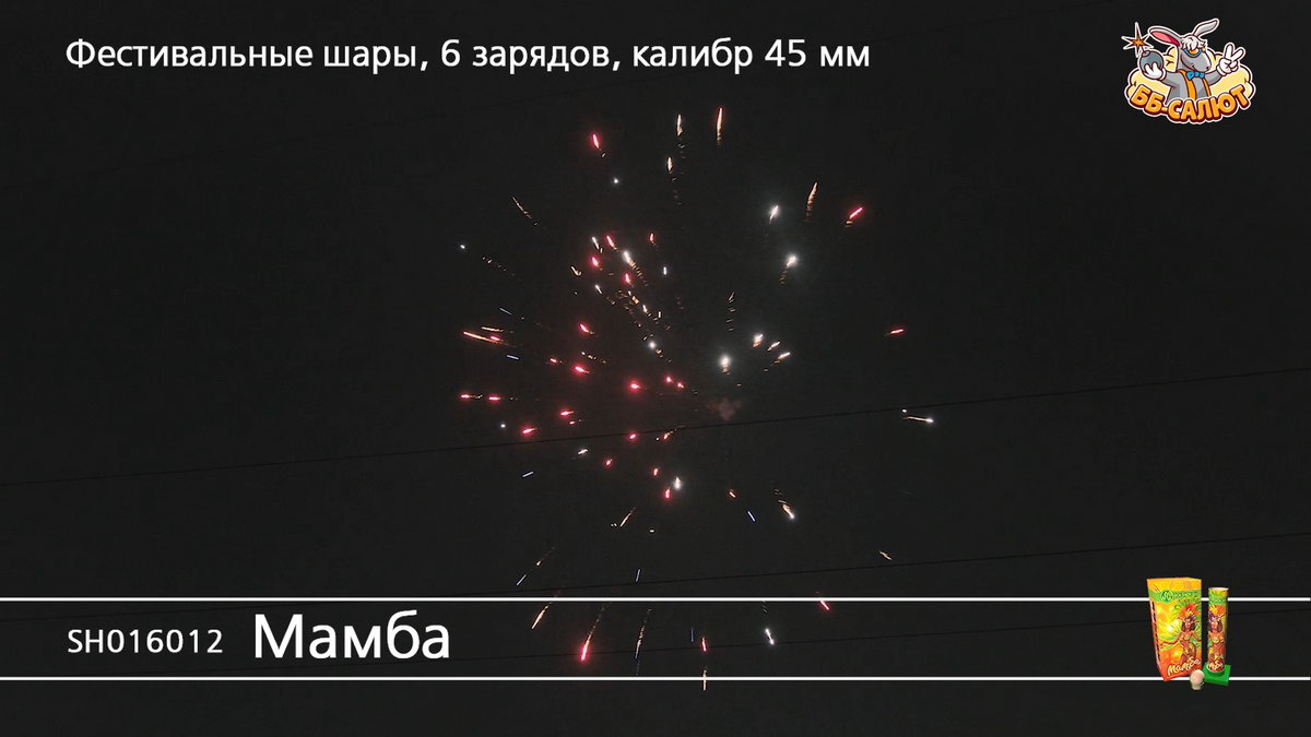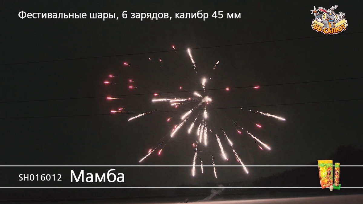 1. Красный пион с серебряной волной внутри сферы. 2. Фиолетовый пион с золотой волной внутри сферы. 3. Красно-синий пион с белым мерцанием. 4. Золотая ива с зеленым мерцанием. 5. Парчовая корона в трещащем облаке. 6. Желтый пион в трещащем облаке.