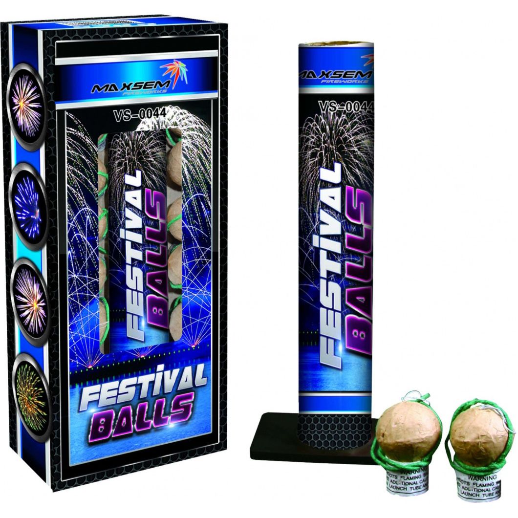 Фестивальные шары - это фактически разобранная на составные части батарея салютов. Фестивальные шары продаются коробками, в коробке находится набор отдельных фейерверочных шаров, каждый - с различным эффектом; а также пусковая трубка - мортира. Каждый шар запускается отдельно.