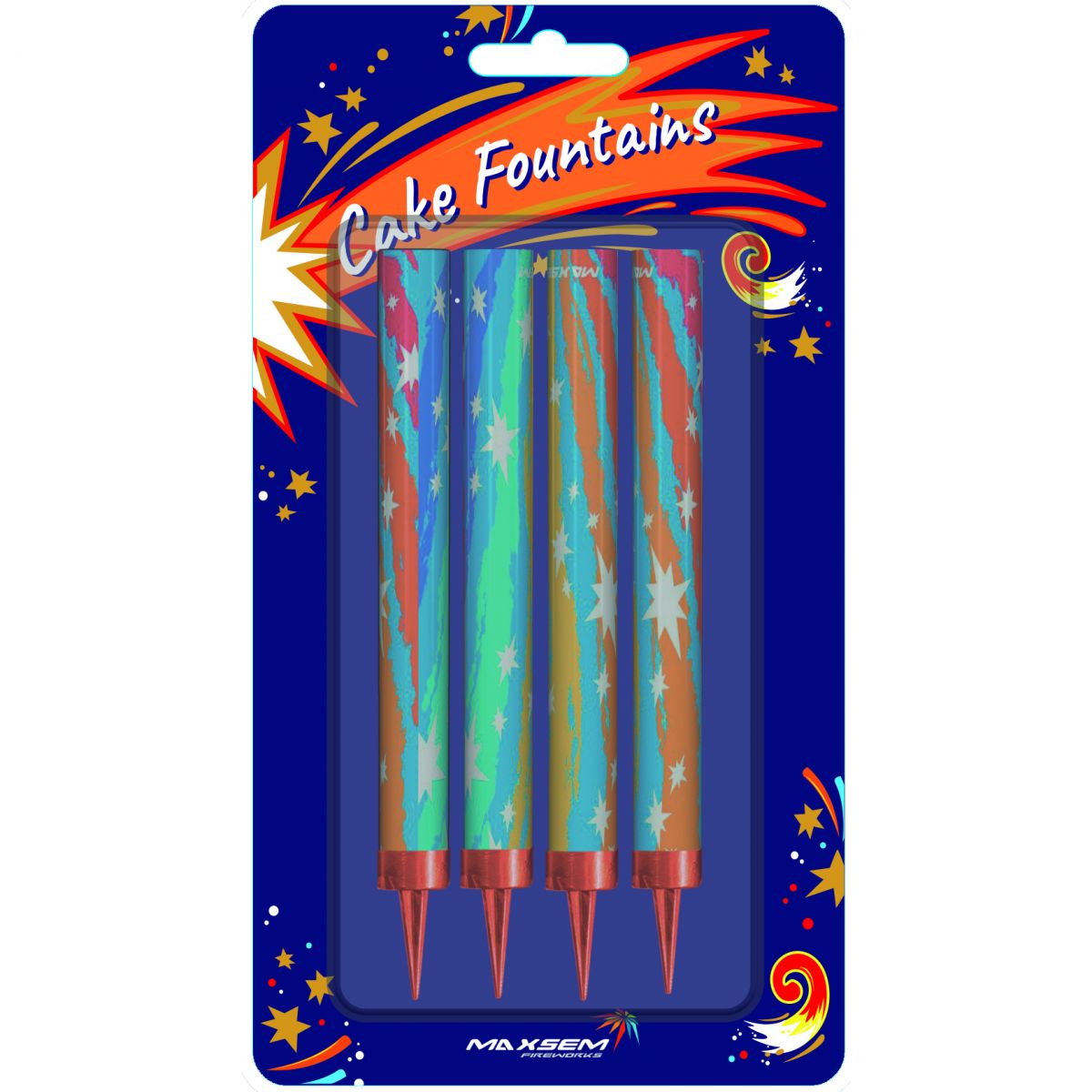 - Другая разновидность холодных фонтанов - фонтаны в торт. Эти миниатюрные изделия снабжены шипом для втыкания в праздничный торт. Фитиля у них нет - поджигать нужно конец фонтана, белую бумажную наклейку. Обратите внимание, что даже в таких мини-фонтанах помимо снопа холодных искр есть открытое пламя - высотой примерно 5-10 см.