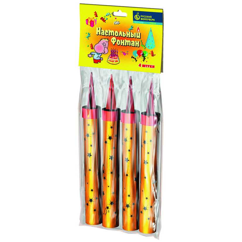 Фонтан настольный Р4810 в основном используется в качестве фейерверка для торта. Он немного меньше по размеру, чем "Фейерверк для торта большой", имеет меньшую продолжительность работы и высоту фонтана искр. Однако нельзя сказать, что характеристики этих двух изделий очень сильно различаются. "Фонтан настольный" продается в упаковках по 4 фонтанчика, цена указана за упаковку.