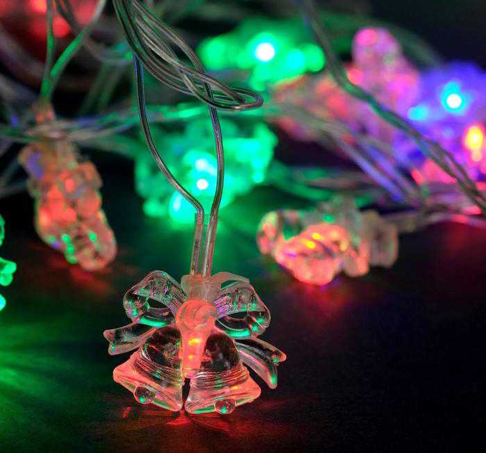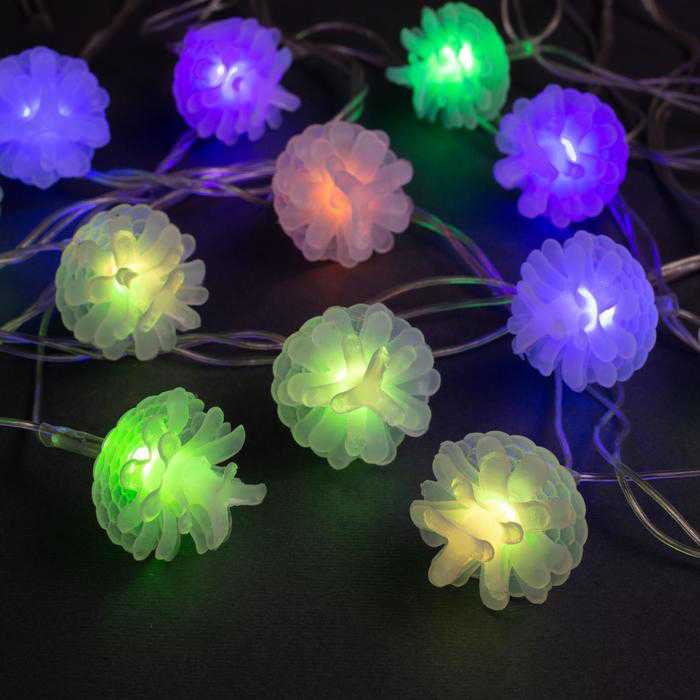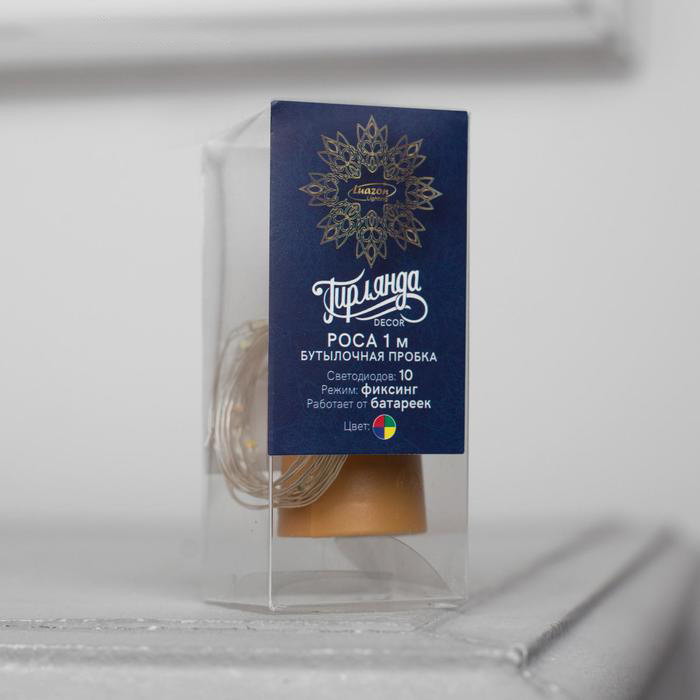 Гирлянда "Роса" для украшения праздничного стола мультицвет (с пробкой, батарейки в комплекте)