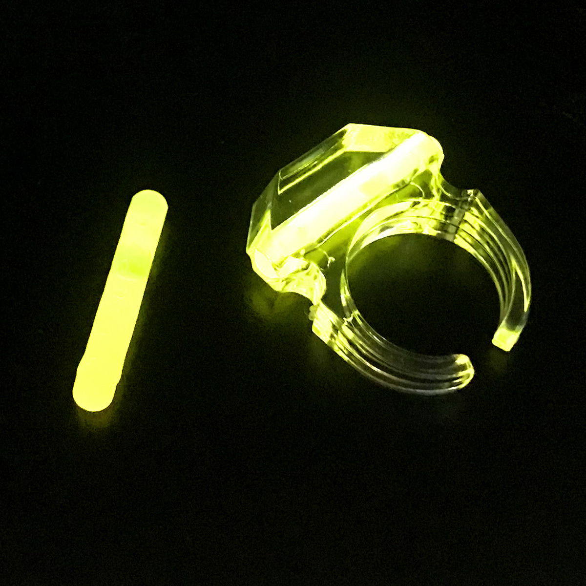 Светящееся неоновое кольцо выглядит классно и стильно! В комплекте - пластмассовое прозрачное кольцо, которое служит креплением для маленького "глоустика" (светящаяся палочка ХИС). Внимание! Сами палочки очень маленькие, мы не рекомендуем давать это кольцо совсем маленьким детям по избежание проглатывания химического элемента. В комплекте идет одно кольцо и 2 палочки, т.е. комплект можно использовать два раза (в кольцо вставляется одна палочка за раз).
