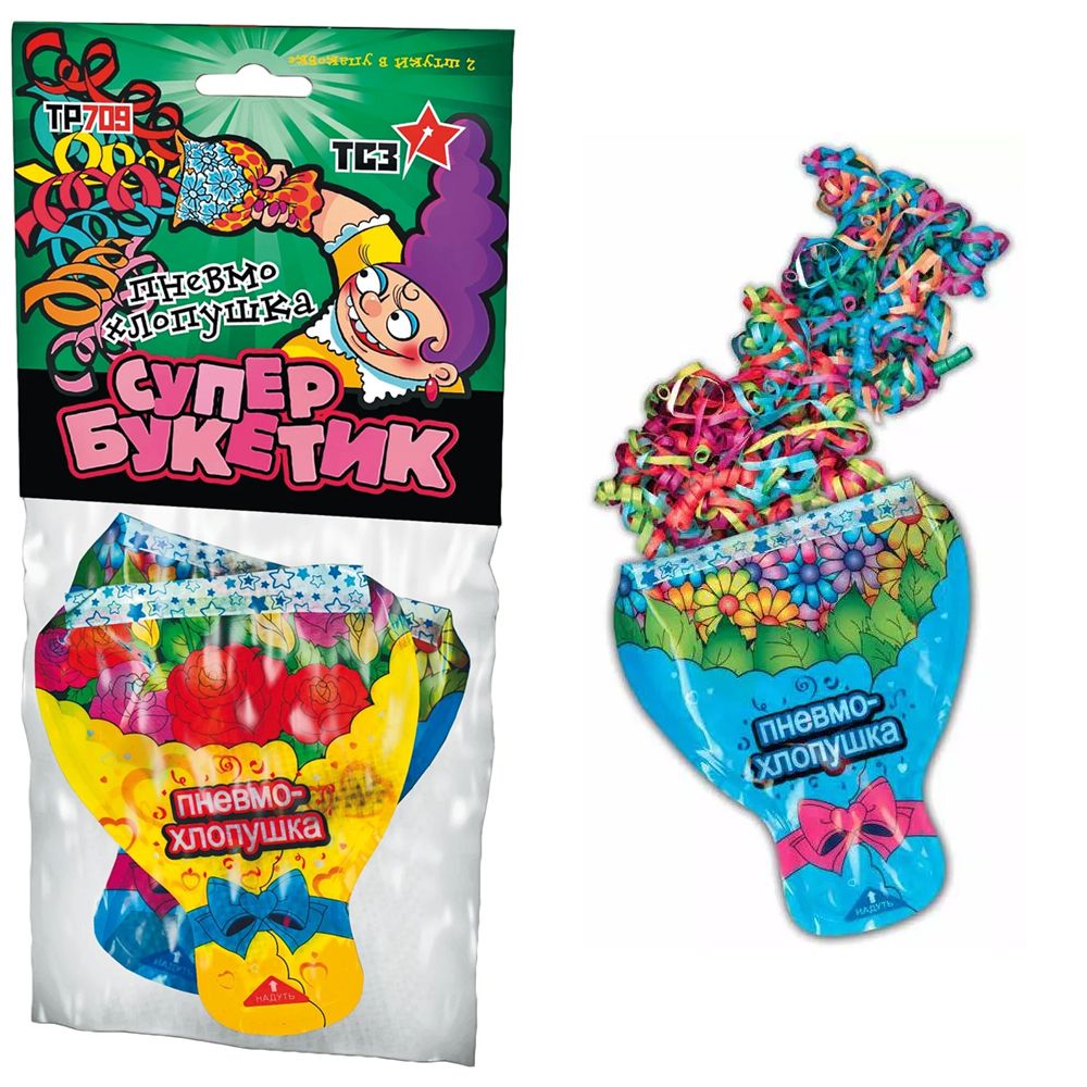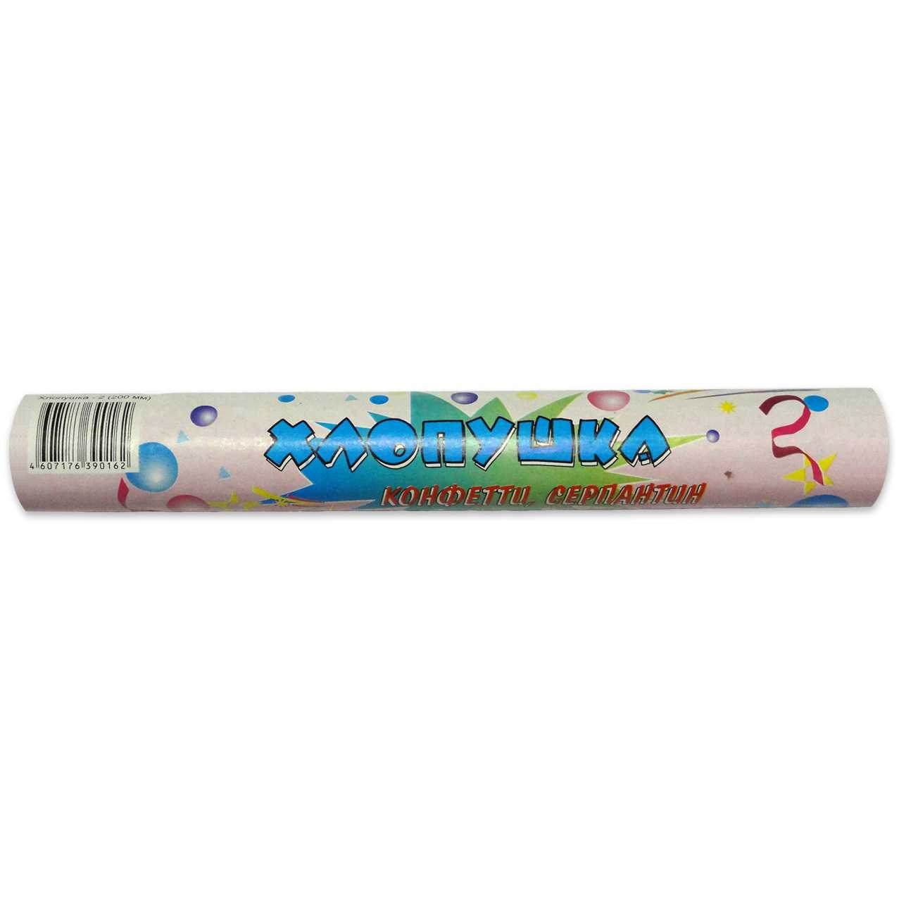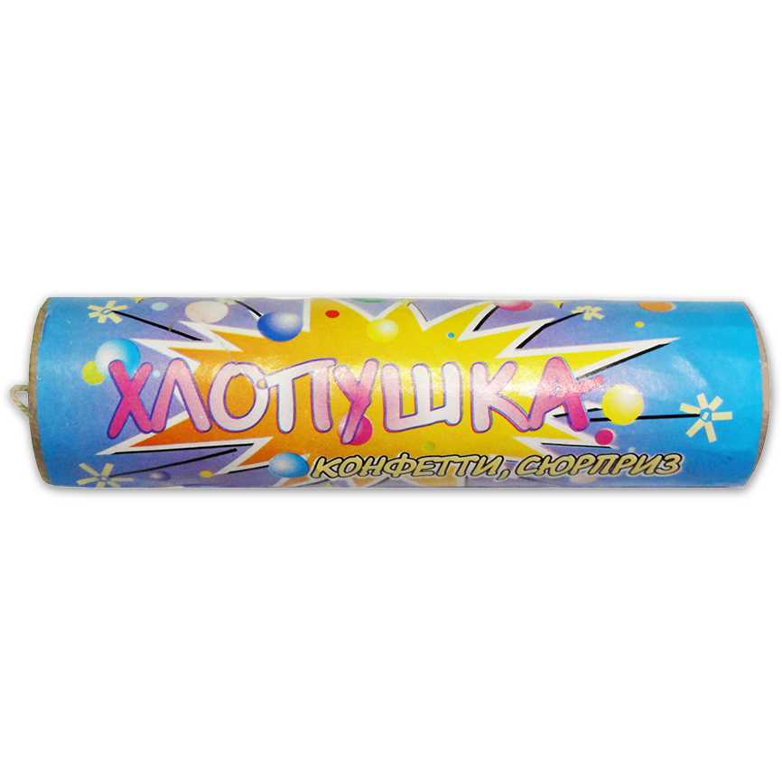 Классика жанра. Хлопушка длиной 20 сантиметров, наполненная конфетти и серпантином - уже серьезнее, но все равно не очень много! С пневмохлопушкой не сравнится.
