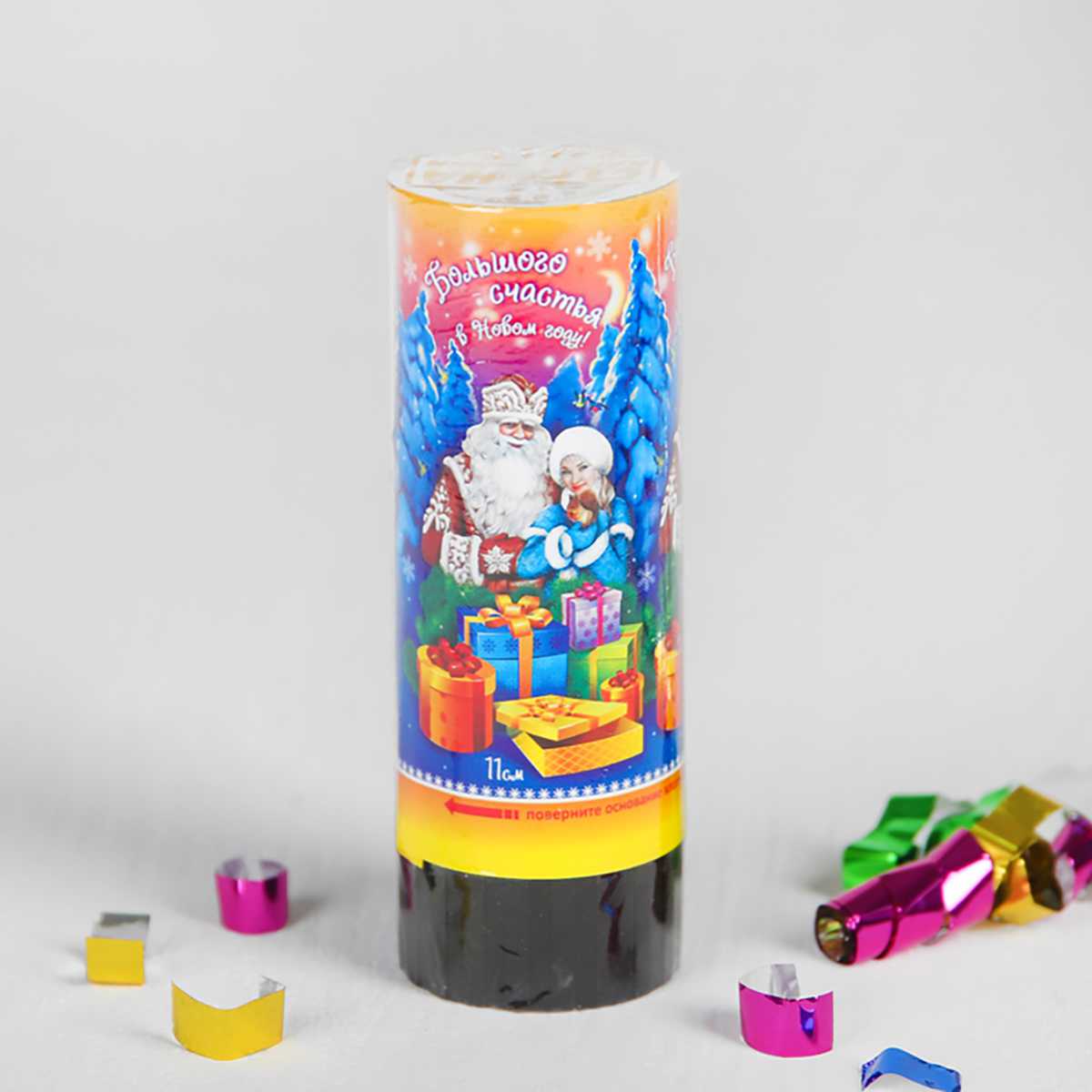 Хлопушка пружинная "Большого Счастья!" (конфетти и серпантин, фольга) 11см