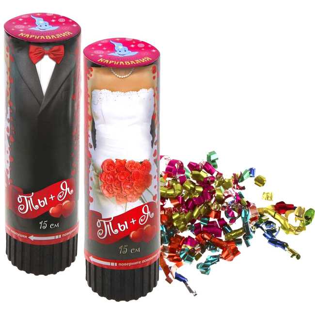 Хлопушка пружинная "Ты + Я" (конфетти и серпантин, фольга) 15см