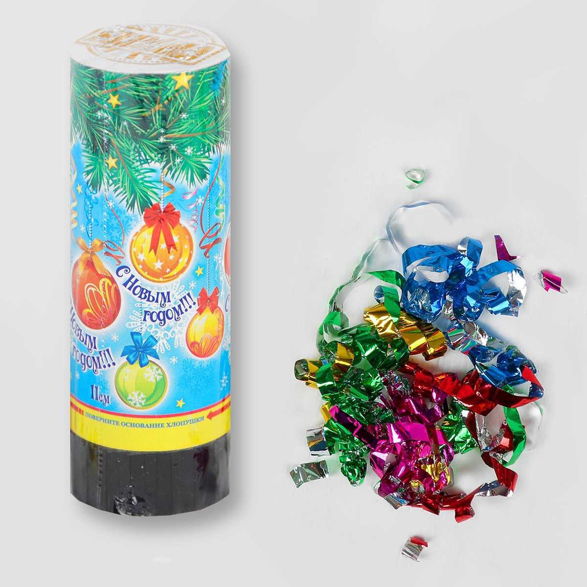 Хлопушка пружинная "С новым годом! Елочные игрушки" (конфетти и серпантин, фольга) 11см