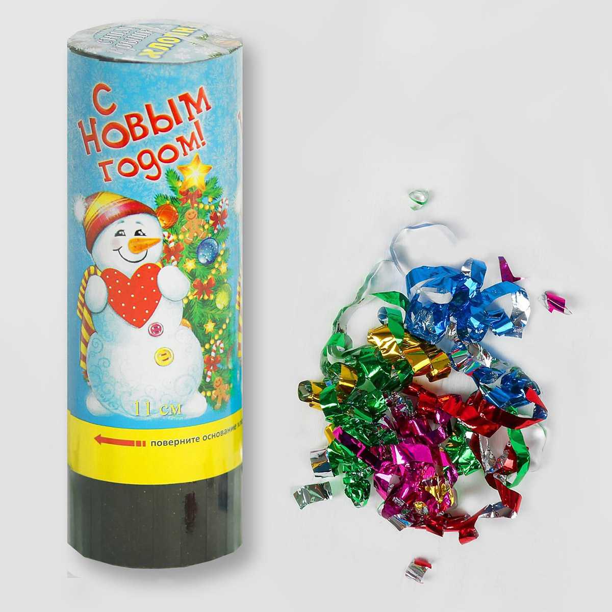 Хлопушка пружинная "С новым годом! Снеговик" (конфетти и серпантин, фольга) 11см