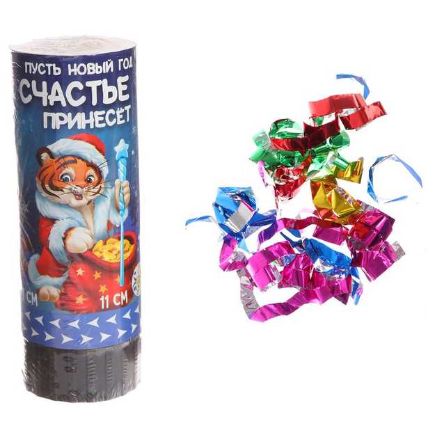 Хлопушка пружинная с Тигром "Пусть новый год счастье принесёт" 11см