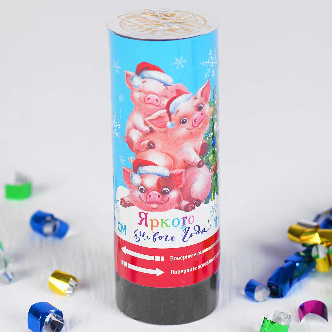 Хлопушка пружинная "Яркого Нового года! ХРЮШКИ" (конфетти и серпантин, фольга) 11см