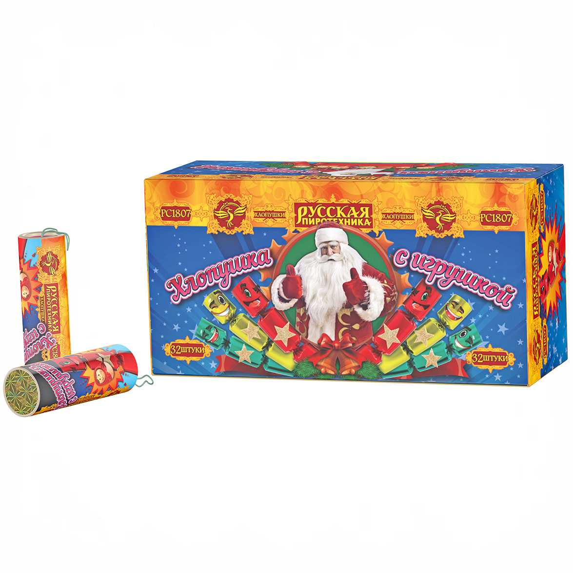 Хлопушки 90мм РС1807 с сюрпризом-игрушкой (коробка 32 шт.)