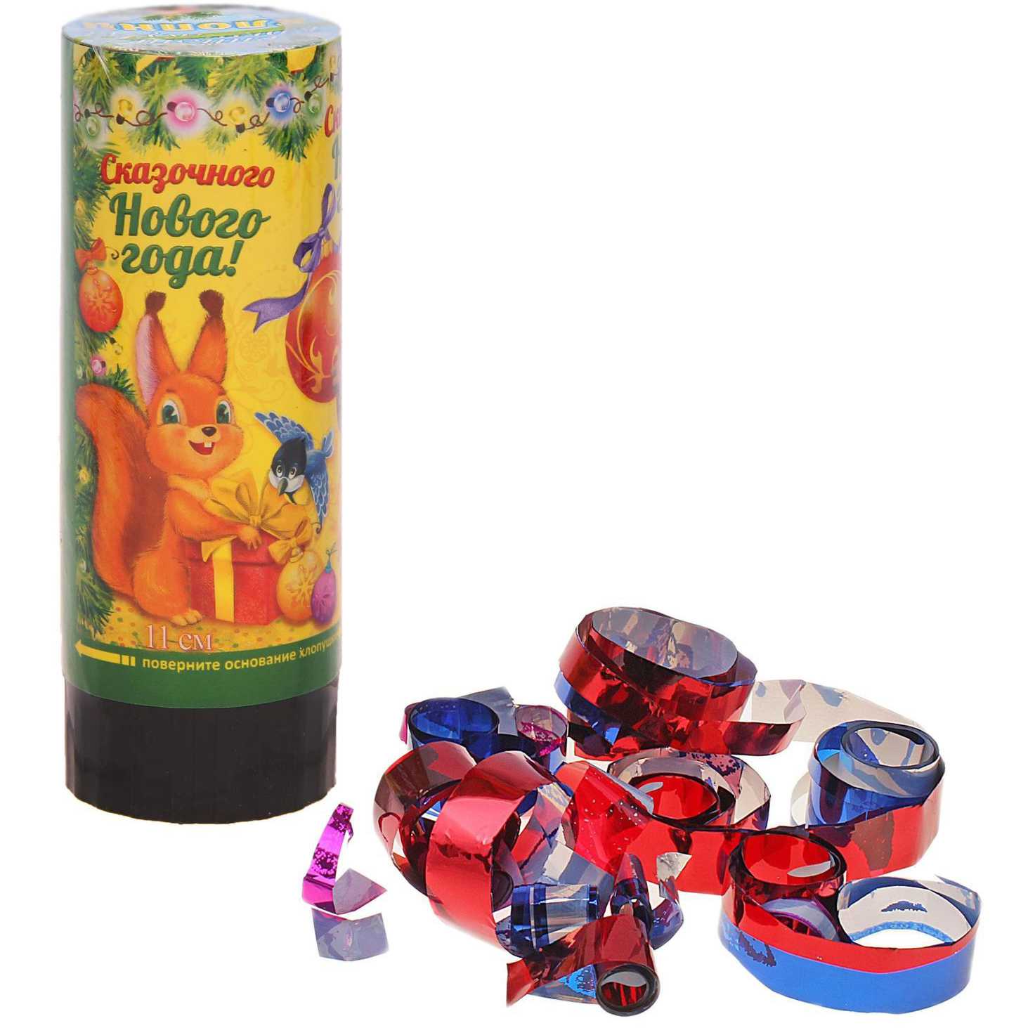 Хлопушка пружинная "Сказочного Нового года! Белочка" (конфетти и серпантин, фольга) 11см