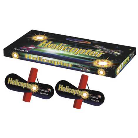 Любимое изделие наших покупателей - летающий фейерверк под названием "Helicopter / Вертолетик". Яркий, блестящий и забавный. "Вертолетик" полюбится всем зрителям без исключения, от мала до велика! В упаковке шесть летающих фейерверков, внешне напоминающих маленькие самолетики. Каждый фейерверк поднимается в небо с шумом и треском, разбрасывая на своем пути тысячи маленьких огоньков. На пике летающий самолетик громко взрывается и превращается в серебристые искры.