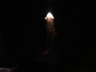 1. Взлетает с шумом. 2. Разбрасывает огненные искры. 3. Взрывается с сильным хлопком.