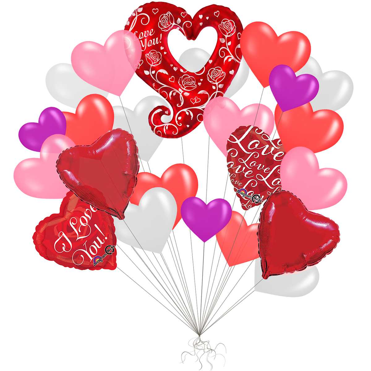 Набор шариков-сердец для дня св.Валентина, свидания или свадьбы. Состоит из 25 шариков, надутых гелием и обработанных составом Hi-Float для максимальной продолжительности полета. В набор входит: