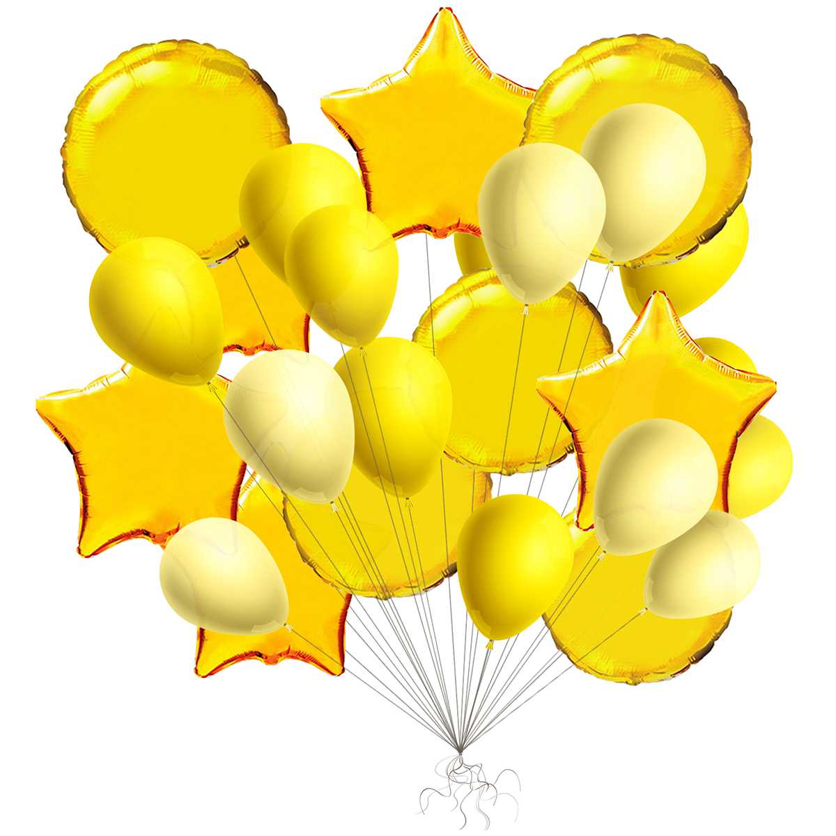 Набор сияющих золотых шариков для любого праздника или украшения интерьера. Состоит из 30 шариков, надутых гелием и обработанных составом Hi-Float для максимальной продолжительности полета. В набор входит: