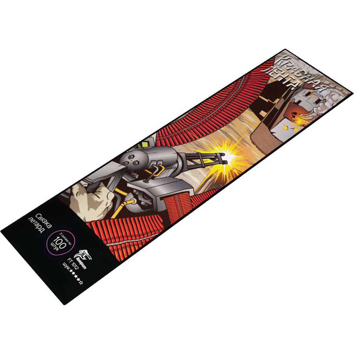 Петарды "Красная лента" - новое оригинальное дополнение к нашей коллекции петард, т.н. "пулеметная лента", или связка петард. Она представляет собой множество мелких петард, нанизанных на единый фитиль с двух сторон. После поджигания фитиля петарды начинают срабатывать одна за другой. То есть в отличии от классических петард, каждую из которых нужно взрывать отдельно, "Красная лента" производит настоящую канонаду длительностью в 20-30 секунд. С каждой стороны к связке прикреплено по 50 петард, т.е. всего 100! И что самое приятное, вам не нужно долго-долго все это взрывать! Поэтому "Красную ленту" можно назвать "петардами для ленивых".