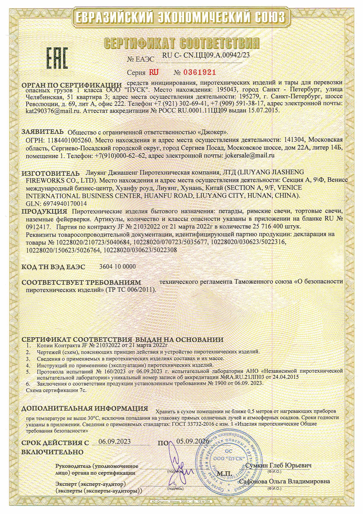 - К сожалению, мы не осуществляем доставку пиротехники в Калининградскую область, а также за пределы Российской Федерации.