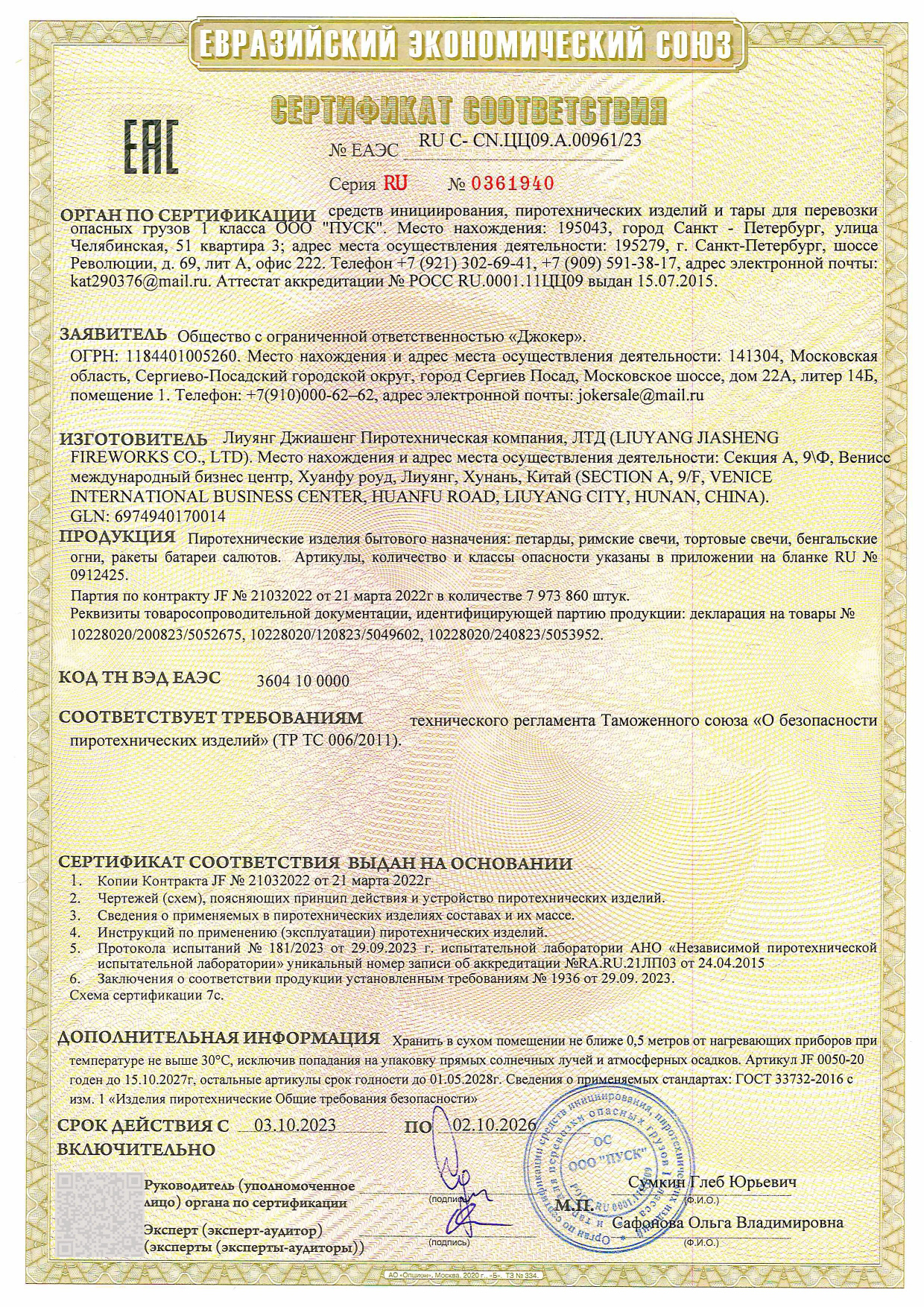 - Обратите внимание, что при покупке фейерверка Вы несете полную ответственность за соблюдение правил хранения, техники безопасности и инструкции по запуску изделия!