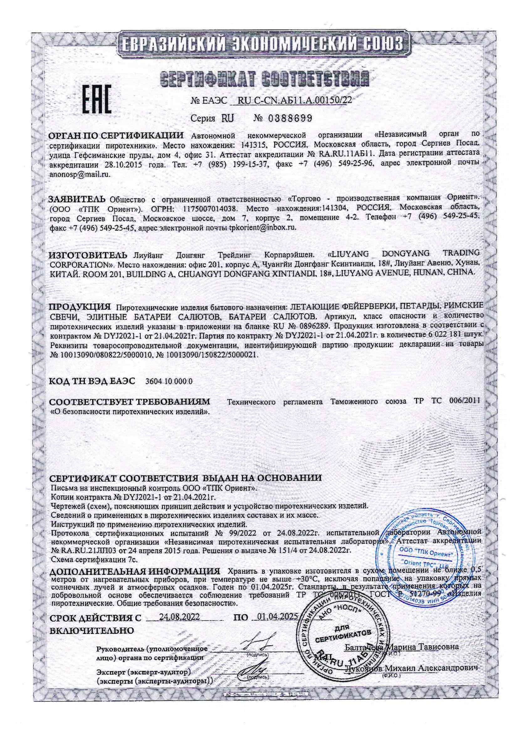 - Обратите внимание, что при покупке фейерверка Вы несете полную ответственность за соблюдение правил хранения, техники безопасности и инструкции по запуску изделия!