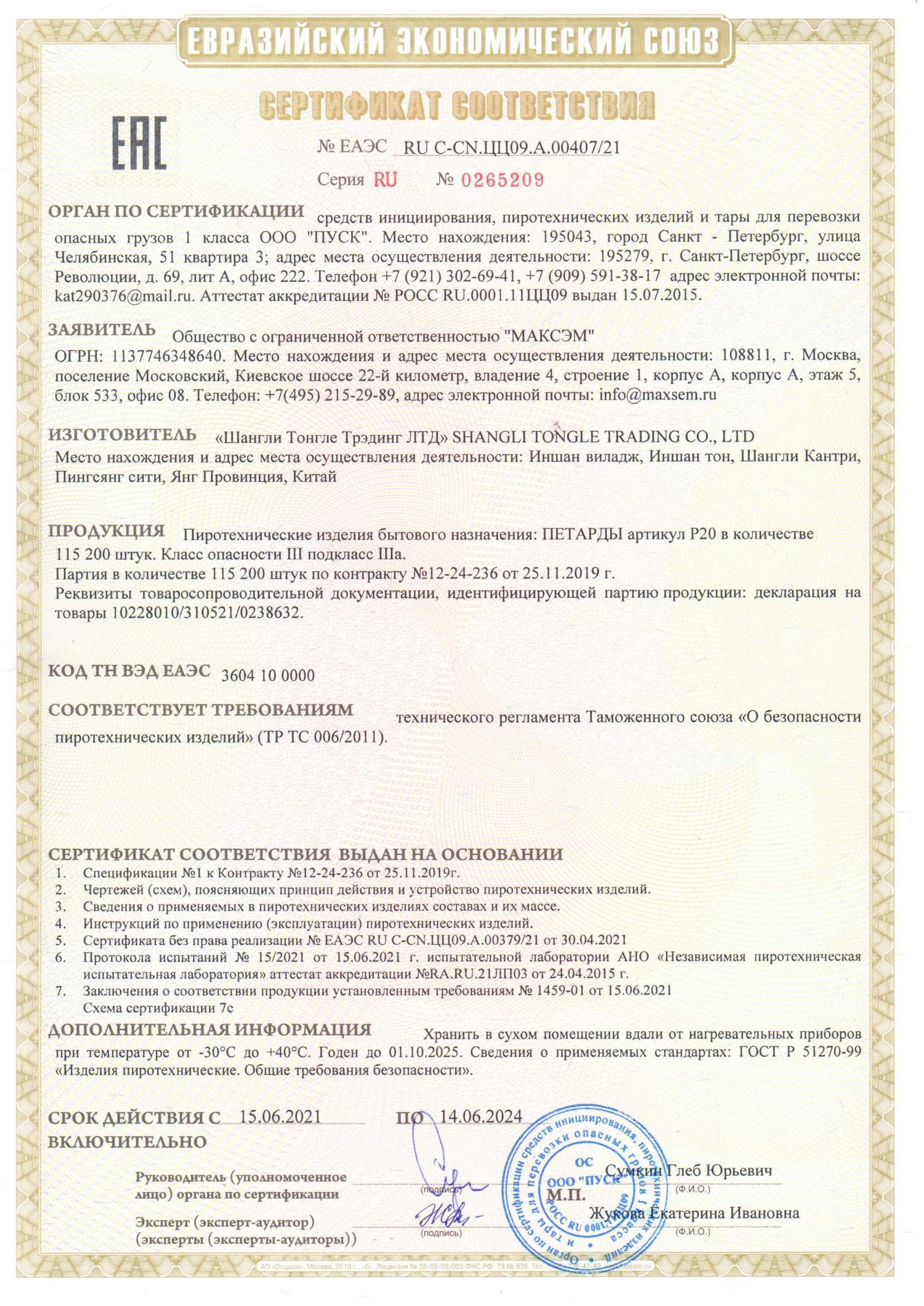 - К сожалению, мы не осуществляем доставку пиротехники в Калининградскую область, а также за пределы Российской Федерации.
