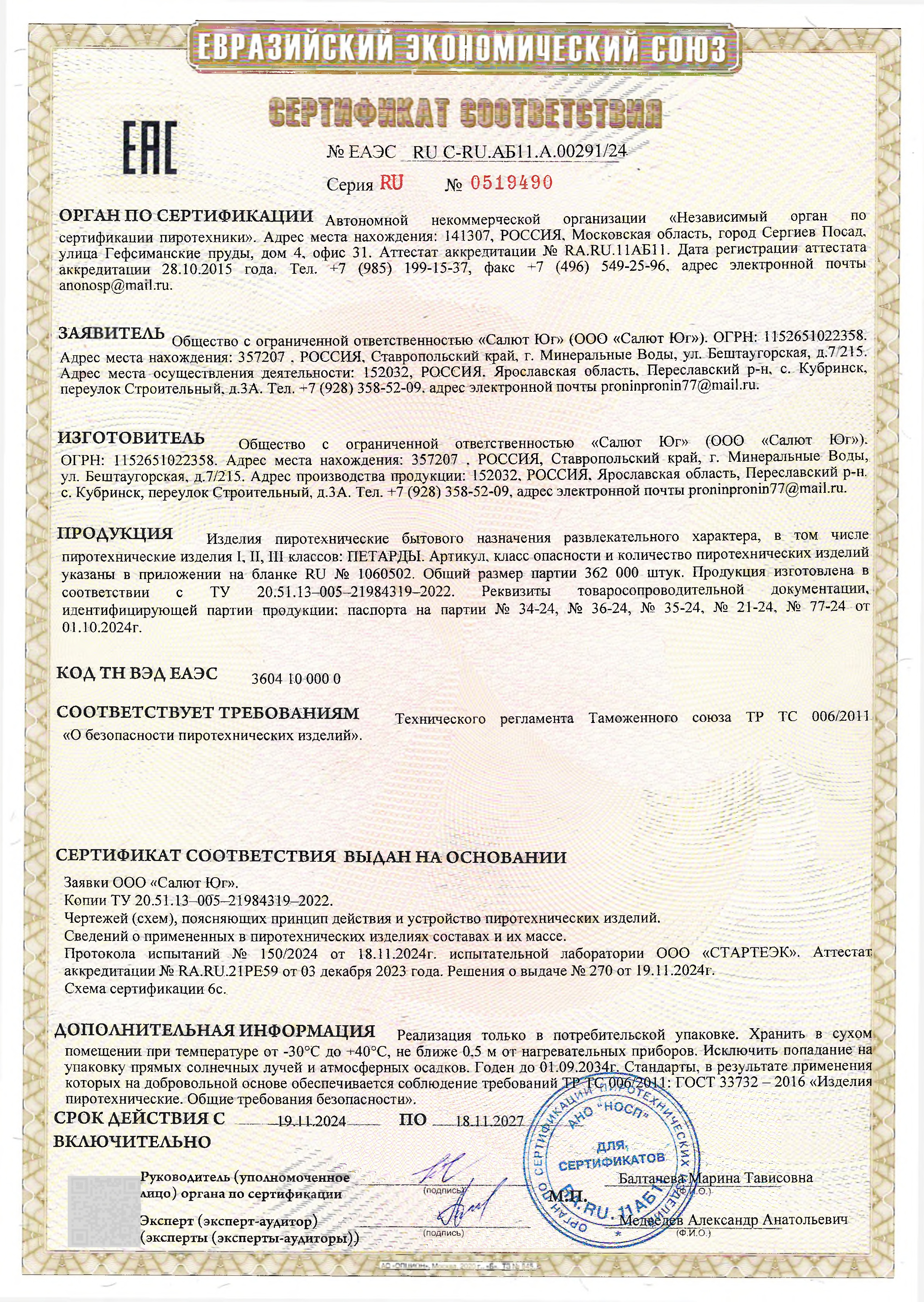 Магазин фейерверков ББ-Салют предоставляет гарантию на весь ассортимент интернет-магазина и розничных магазинов ББ-Салют! Мы торгуем пиротехникой самых лучших, проверенных торговых марок. Все изделия сертифицированы для продажи на территории России и имеют актуальный срок годности.
